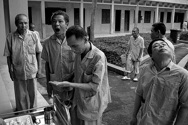 Mỗi ngày các thương binh ở đây phải uống thuốc 2 lần. Nhiều người sợ thuốc, họ tìm mọi cách để trốn. Mỗi khi uống xong, các y sỹ buộc phải để người bệnh lè lưỡi ra để kiểm tra họ đã uống thuốc thật hay chưa. Có nhiều người uống cả lít nước nhưng vẫn ngậm thuốc trong mồm.