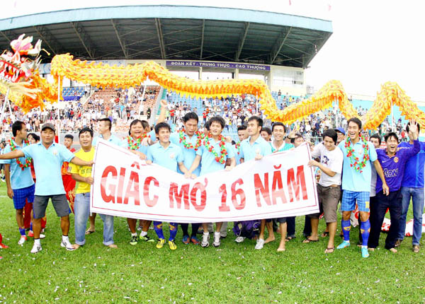 Phải mất 16 năm, HLV Nhan Thiện Nhân mới thực hiện được khát khao cháy bỏng của đời mình: đưa đội bóng tỉnh nhà lên hạng kể từ ngày rớt hạng 16 năm trước, thời ông Nhân còn là cầu thủ.