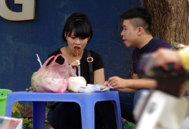 Trong khi đó, những người không biết vẫn ngồi uống ngon lành, trước mặt họ, bà chủ quán vẫn hồn nhiên đeo găng tay gọt dừa, nhúng vào thùng nước hóa chất và vớt ra bày lên kệ. Một số người thắc mắc về hành vi này nhưng sau đó cũng ko mấy quan tâm vì chủ quán nói: “Nước rửa nhựa thôi mà”.