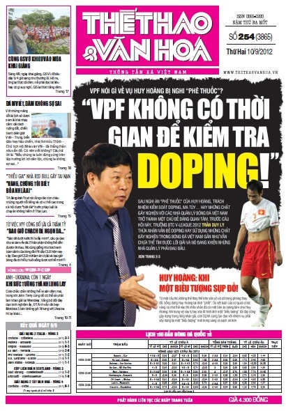 VPF nói gì về vụ Huy Hoàng bị nghi “phê thuốc”?: “VPF không có thời gian để kiểm tra doping!”. Sau nghi án “phê thuốc” của Huy Hoàng, trách nhiệm kiểm soát doping, ma túy… hay những chất gây nghiện với các nhà quản lý bóng đá VN trở thành một chủ để đáng quan tâm. Trước câu hỏi này, trưởng BTC V-League 2012 Trần Duy Ly thừa nhận vấn đề doping hay sử dụng những chất gây nghiện trong bóng đá VN gần như vẫn chưa thể tìm được lời giải và nó đang khiến những nhà quản lý phải đau đầu. Xem trang 3