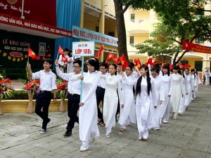 Lễ đón các em học sinh lớp 10 vào năm học mới 2011-2012 ở trường Trung học phổ thông Nguyễn Gia Thiều, quận Long Biên, Hà Nội - Ảnh: Quý Trung/TTXVN
