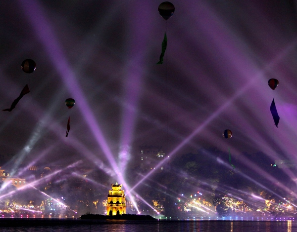 2. “Đêm lung linh Hồ Gươm” tối 1/10 là điểm nhấn của ngày Khai mạc Đại lễ. Cùng với chương trình trình diễn thời trang áo dài truyền thống Việt Nam với sự tham gia của 200 người mẫu và 1.000 bộ áo dài là màn trình diễn ánh sáng laser và bắn pháo hoa bên Hồ Gươm. Khoảnh khắc tháp Rùa lung linh trong đêm Hồ Gươm dưới ánh sáng laser và pháo hoa tối 1/10 là khoảnh khắc diệu kỳ và không lặp lại ở nơi trái tim của Hà Nội này, bởi vì các màn pháo hoa bên Hồ Gươm dự kiến vào đêm 10/10 đã bị hủy.