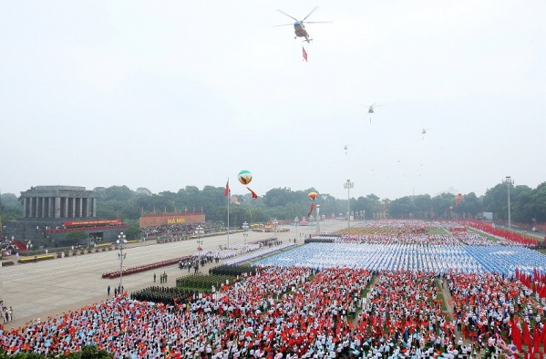 8. Sáng 10/10, Lễ diễu binh, diễu hành quy mô chưa từng thấy đã diễn ra tại Quảng trường Ba Đình, chào mừng Đại lễ 1.000 năm Thăng Long- Hà Nội. 10 chiếc máy bay trực thăng đã bay diễu binh theo đội hình tiến qua lễ đài.