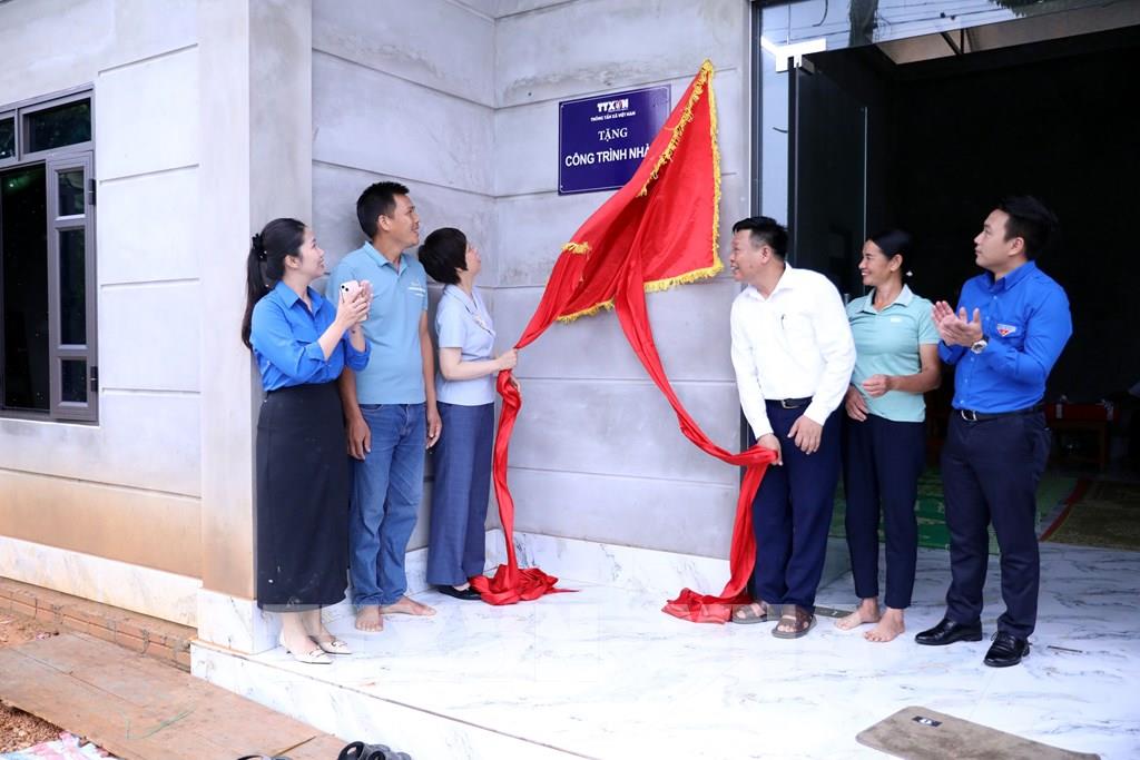 Tổng Giám đốc TTXVN Vũ Việt Trang khánh thành ngôi nhà mới do TTXVN hỗ trợ kinh phí xây dựng. Ảnh: Quang Cường - TTXVN