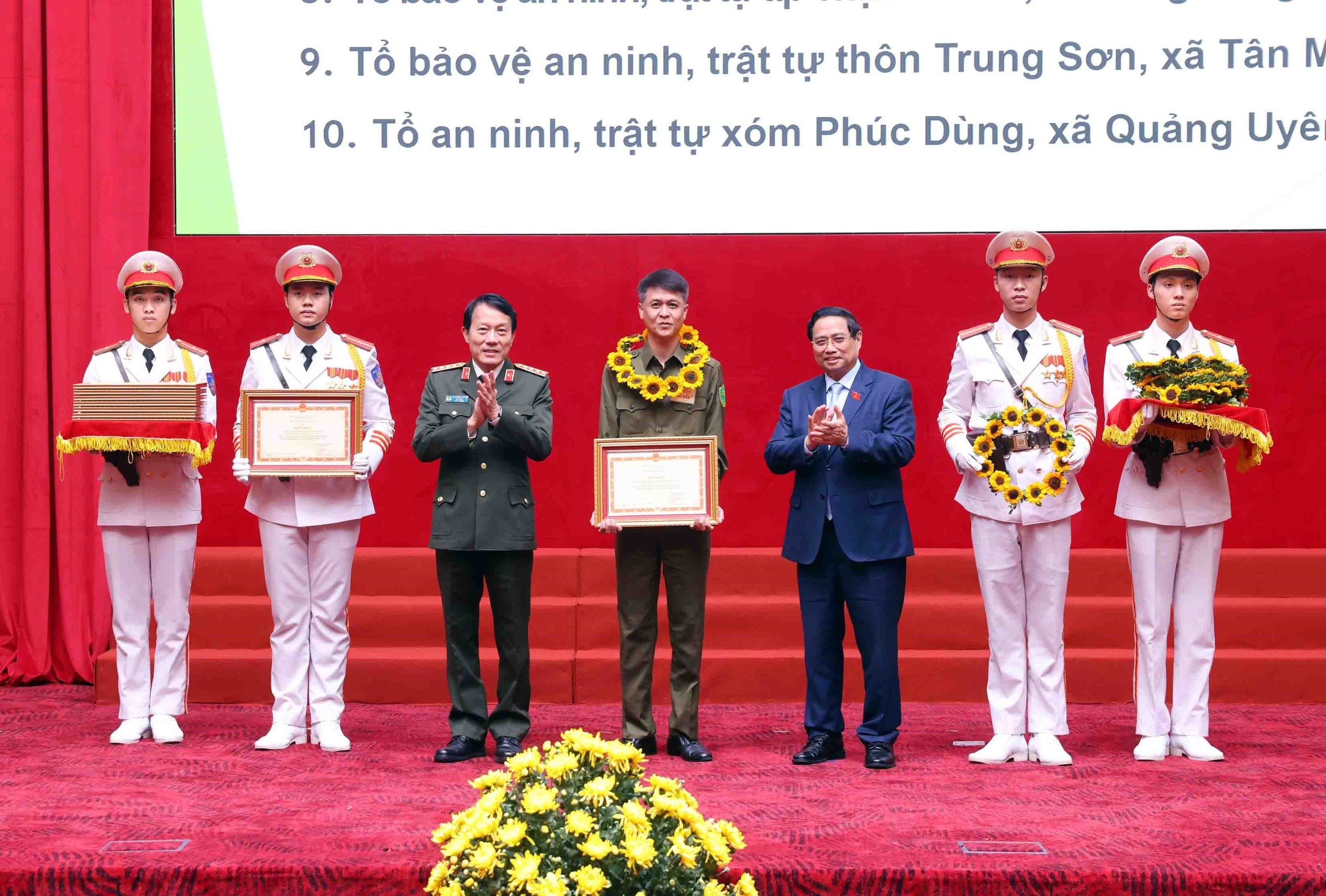 Thủ tướng Phạm Minh Chính và Đại tướng Lương Tam Quang, Bộ trưởng Bộ Công an vinh danh các cá nhân có thành tích xuất sắc trong phong trào bảo vệ an ninh, trật tự ở cơ sở