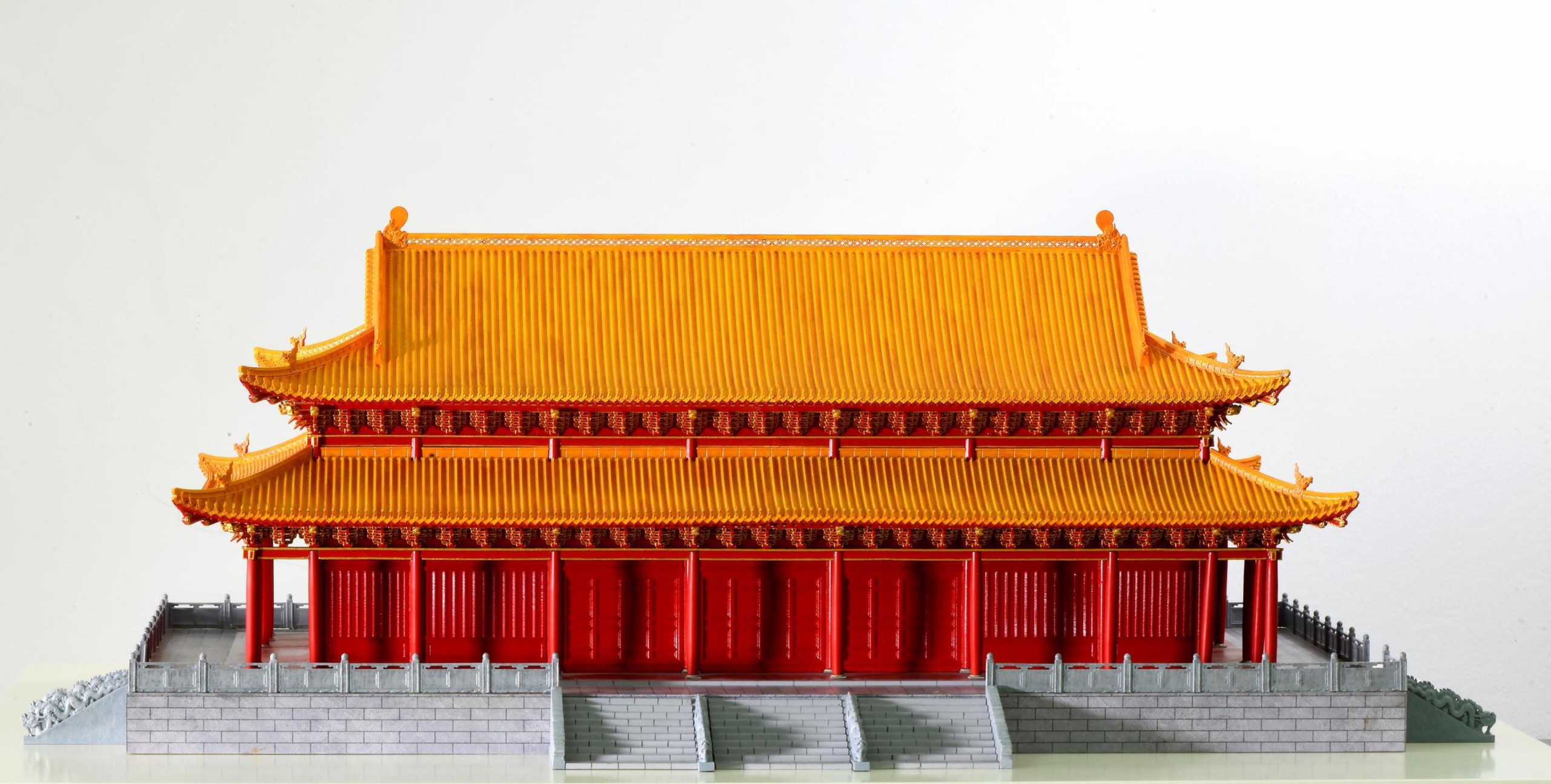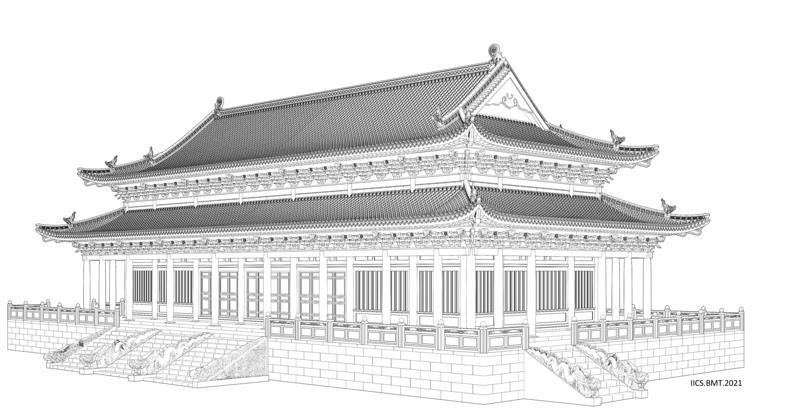 Những giả thiết về mô hình điện Kính Thiên cần được giới thiệu song song với quá trình tiếp tục nghiên cứu. Trong ảnh là bản vẽ 3D của kiến trúc này, do Viện Nghiên cứu kinh thành giải mã và phục dựng