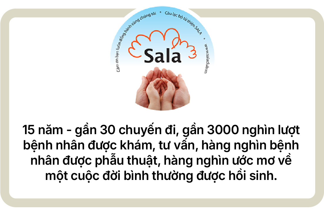 "Muốn làm được công việc này, ngoài chuyên môn của bác sĩ, nhất định phải có những tấm lòng đồng hành. Chuyên môn tốt là điều kiện cần, nhưng điều kiện đủ là phải có sự sẻ chia về kinh phí cho bệnh nhân. Bởi rất nhiều gia đình nghèo - nhất là các cháu nhỏ bị dị tật - dù biết cần phẫu thuật, cần khám chữa, nhưng họ không có điều kiện để đi lại, ăn ở, thậm chí không đủ tiền đưa con xuống núi. Nhà nước có nhiều chính sách tốt, nhưng vẫn nhiều chi phí ngoài mà bệnh nhân phải chi trả như: chi phí đi đường, ăn uống, trọ lại… là cả một gánh nặng. Bác sĩ chúng tôi có thể giúp vài trường hợp, nhưng không thể thay thế được cả một nguồn lực lớn lao. Vì thế, để hành trình Sala hiệu quả, rất cần sự chung tay của các nhà hảo tâm, các doanh nghiệp, những người muốn đồng hành cùng thiện nguyện. Đó cũng chính là áp lực khi tôi nhận lời: phải lan tỏa được tinh thần của Sala để có thêm nhiều tấm lòng đến với người bệnh."