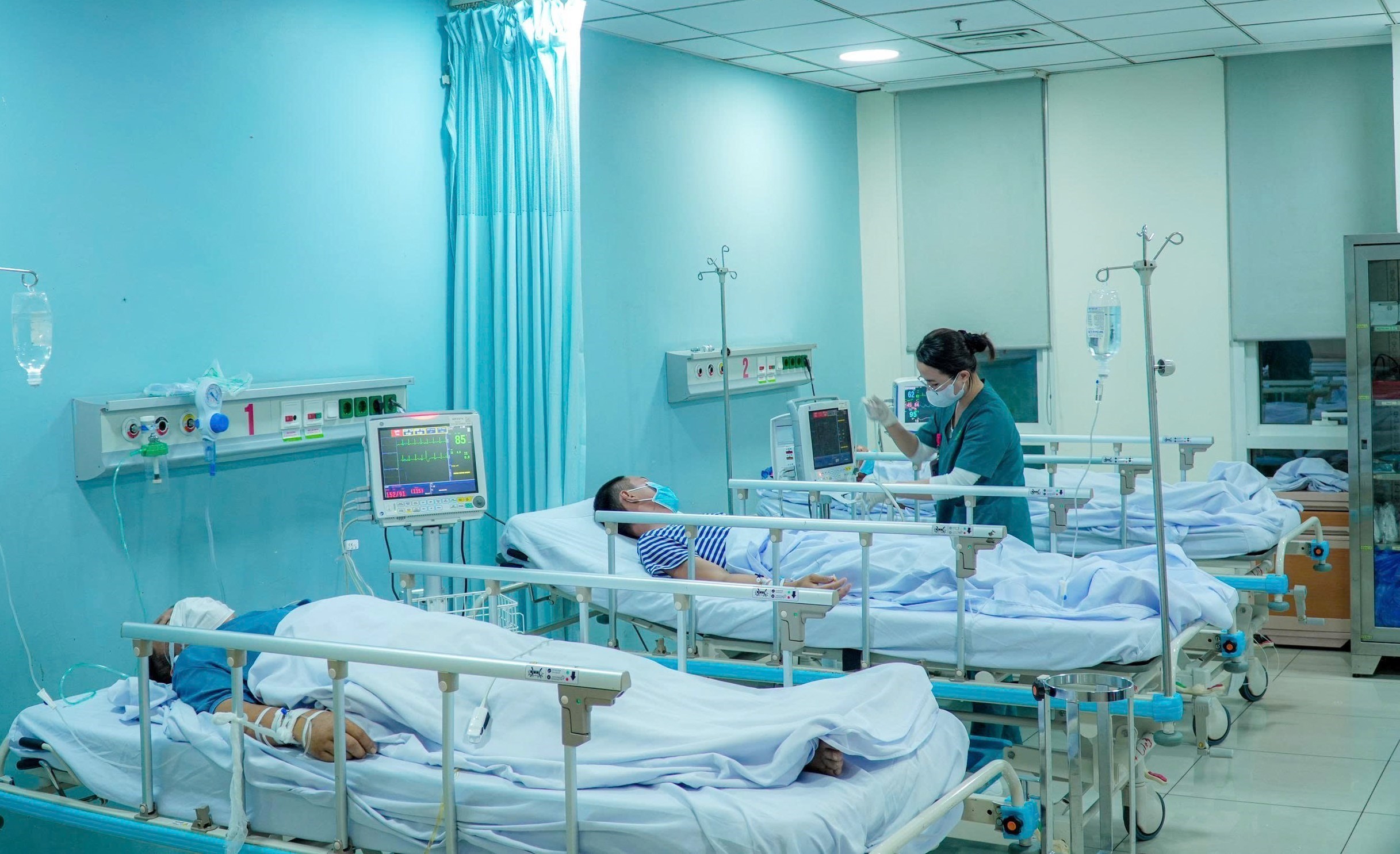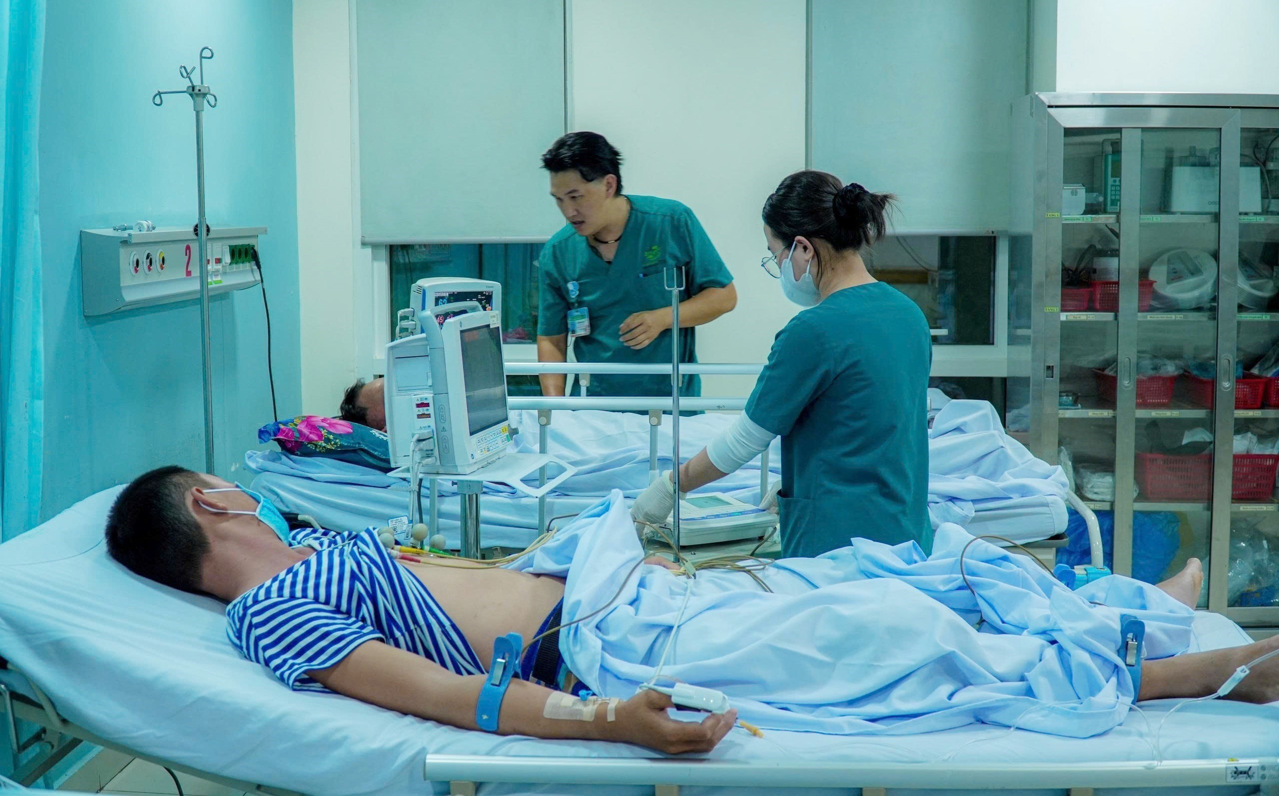 Bác sĩ Bệnh viện Quân y 175 theo dõi, điều trị cho 3 bệnh nhân sau khi về đất liền. Ảnh: TTXVN phát