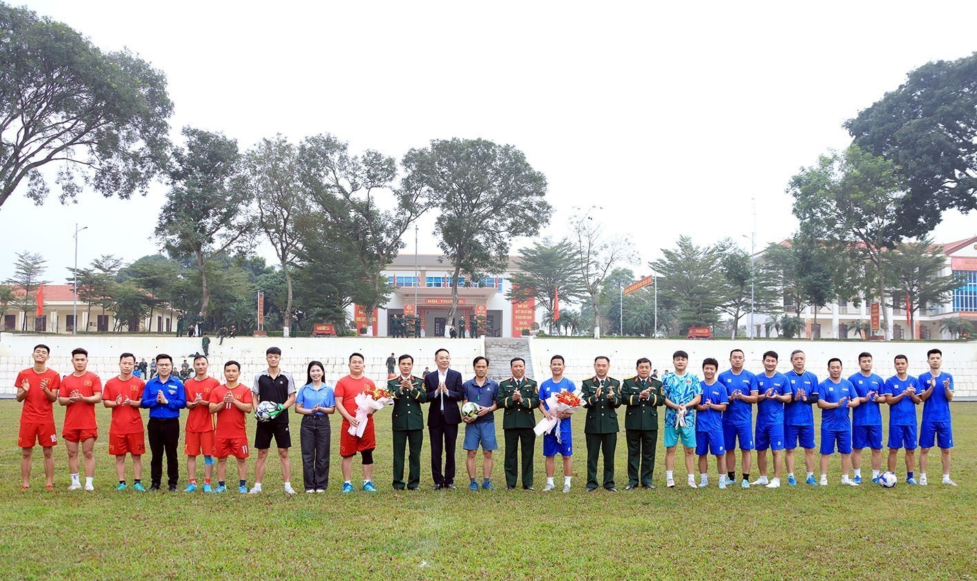 Giao lưu bóng đá giữa hai đơn vị. Ảnh: Tuấn Anh - TTXVN