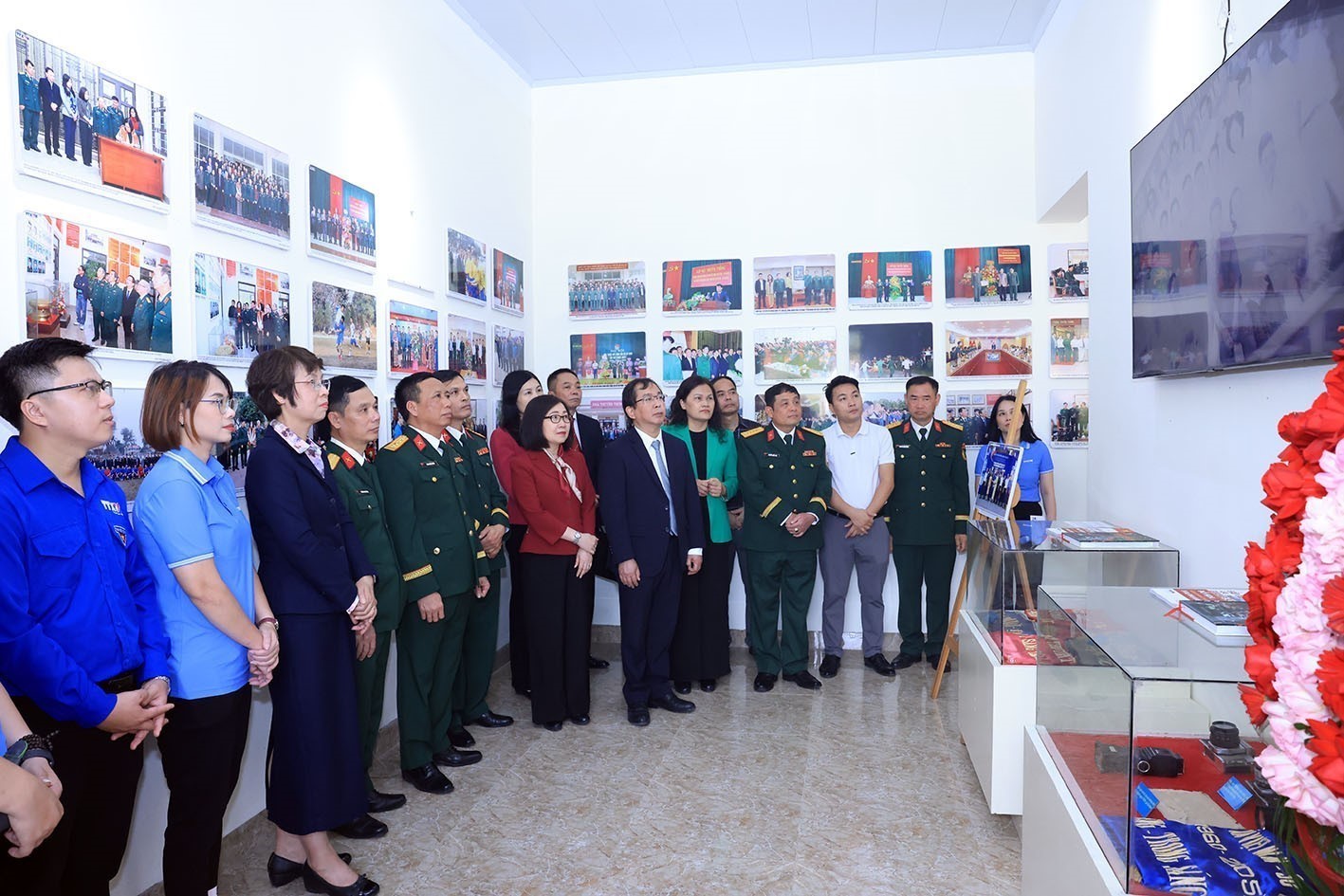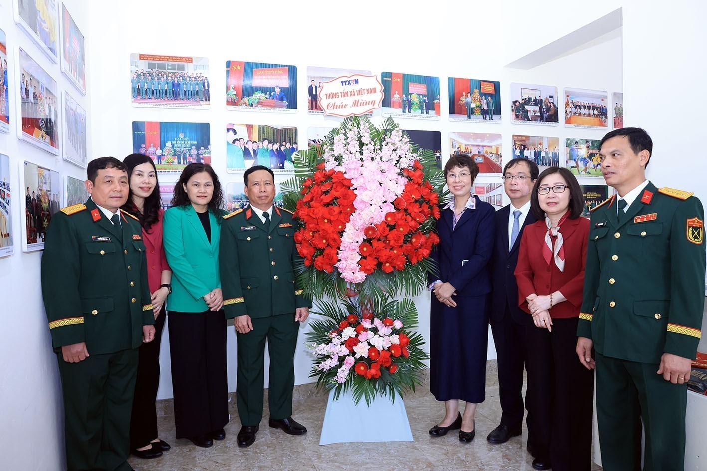 Lãnh đạo TTXVN và Sư đoàn Bộ binh 304 chụp ảnh chung tại Phòng truyền thống. Ảnh: Tuấn Anh - TTXVN