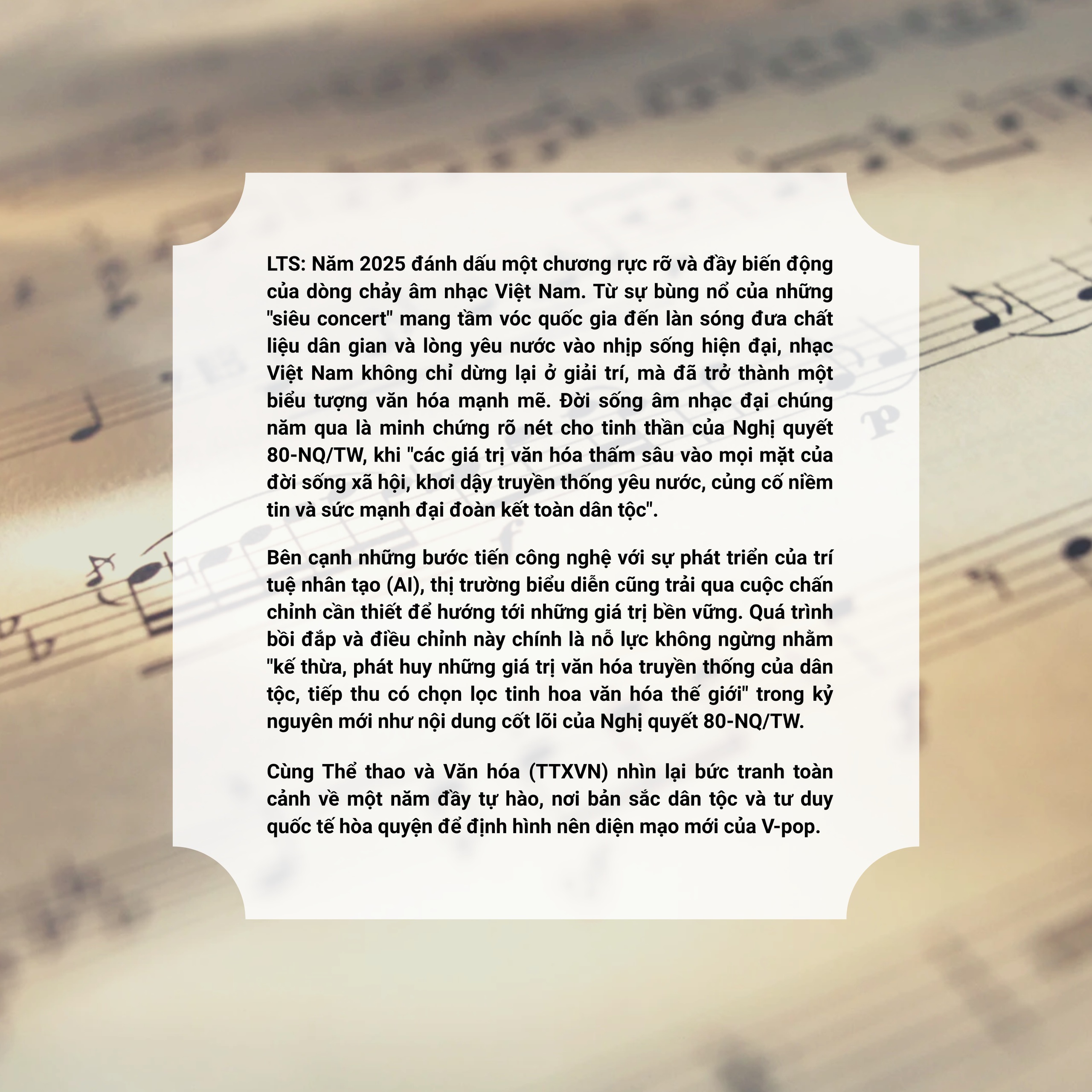 Ở một tầng sâu hơn, sự bùng nổ của concert quốc gia năm 2025 còn được nhìn nhận như minh chứng cho tiềm năng phát triển của công nghiệp văn hóa trong lĩnh vực âm nhạc. Khi những chương trình chính luận được tổ chức với chuẩn mực kỹ thuật, nghệ thuật tiệm cận các đại nhạc hội quốc tế, vấn đề không chỉ nằm ở khía cạnh tư tưởng - tuyên truyền, mà còn liên quan đến năng lực sản xuất, tổ chức, vận hành một "sản phẩm văn hóa - giải trí" quy mô lớn.