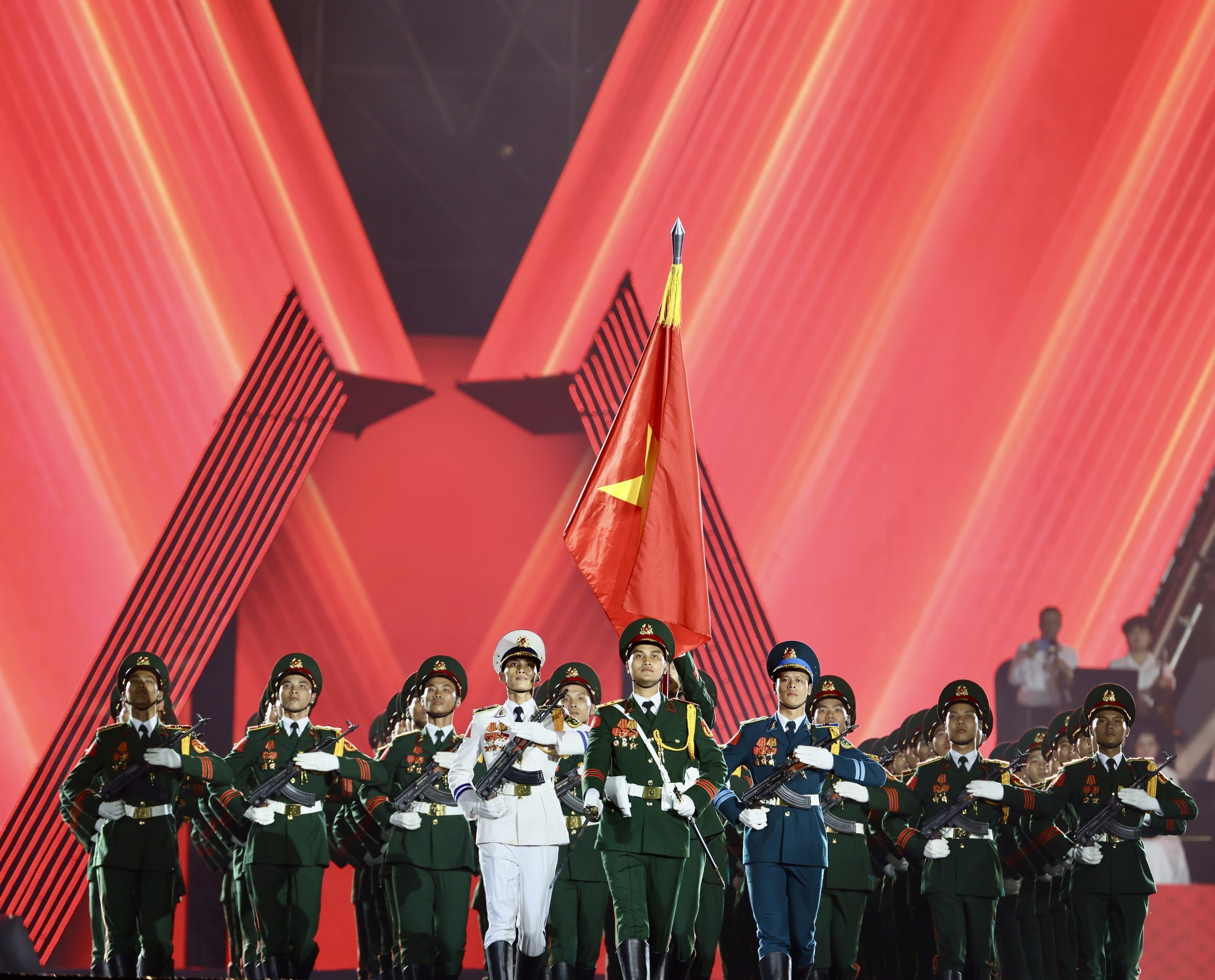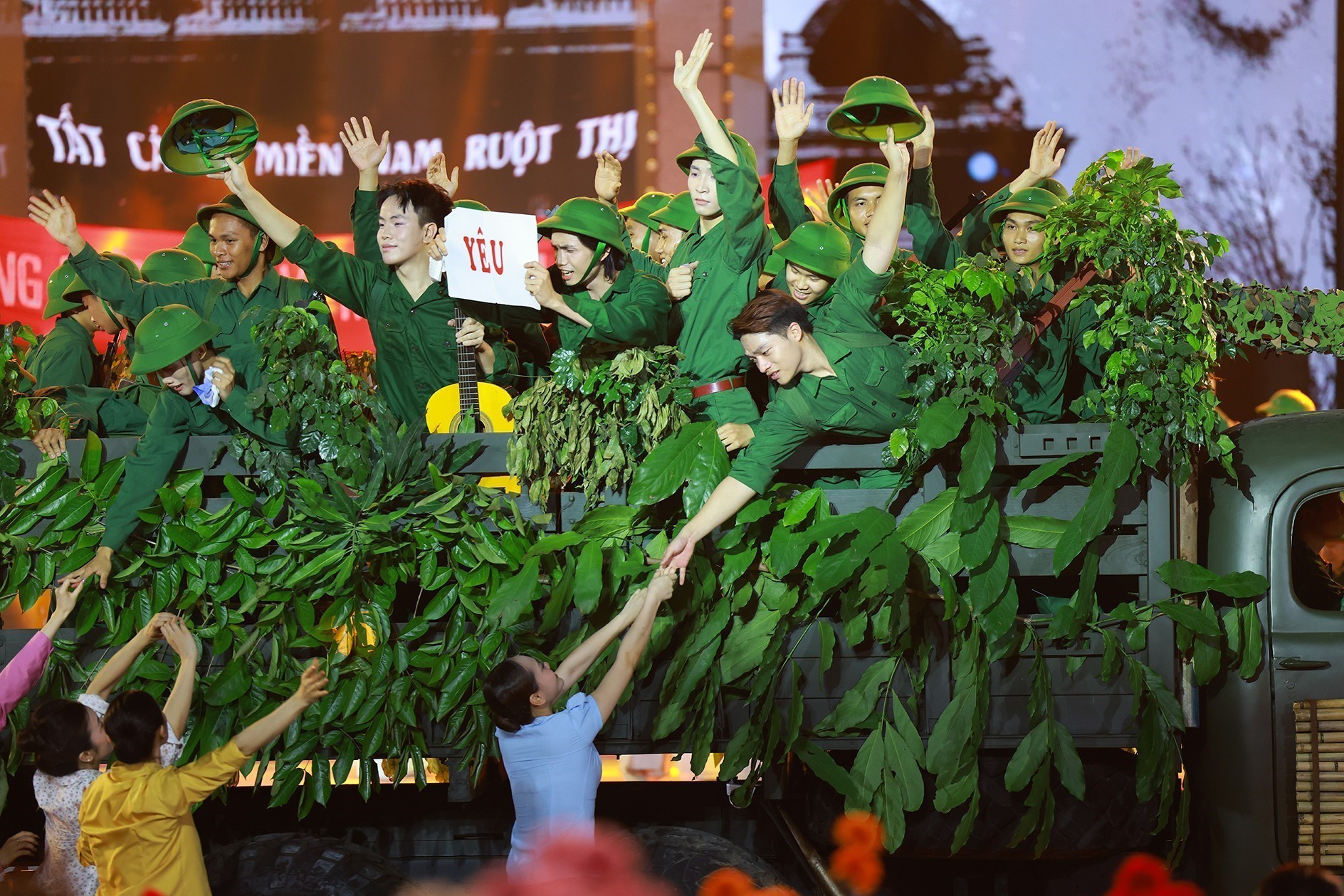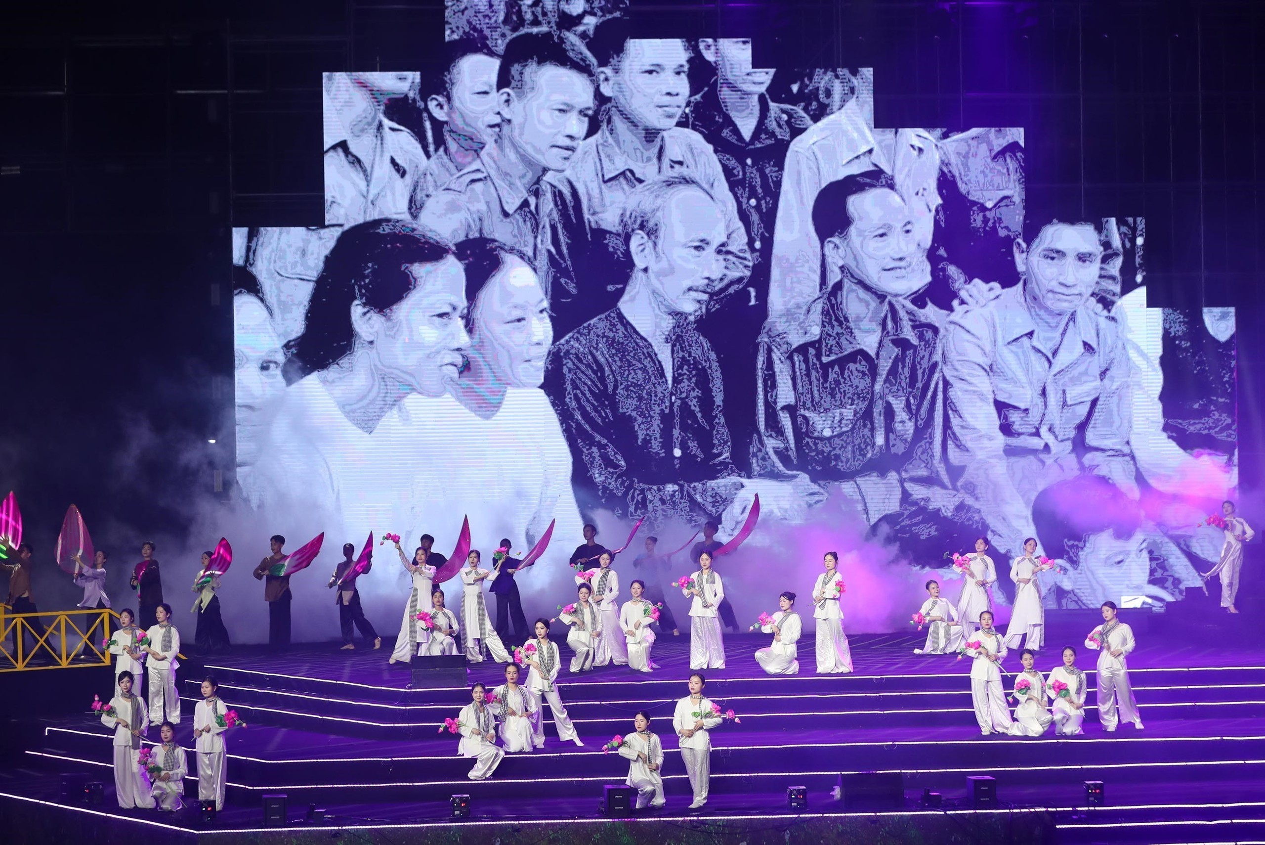 Song song với đó là sự đan xen giữa âm nhạc và hình ảnh. Tư liệu chiến tranh, hình ảnh tư liệu về các mốc son lịch sử, về lãnh tụ, về các anh hùng liệt sĩ, các thế hệ thanh niên trong lao động - chiến đấu được xử lý bằng công nghệ đồ họa, màn hình LED cỡ lớn, projection mapping trên các khối sân khấu, tạo hiệu ứng thị giác mạnh. Thay vì chỉ nghe thuyết minh, khán giả vừa nghe nhạc, vừa "nhìn thấy" lịch sử hiện lên bằng những hình ảnh sống động, giàu cảm xúc.