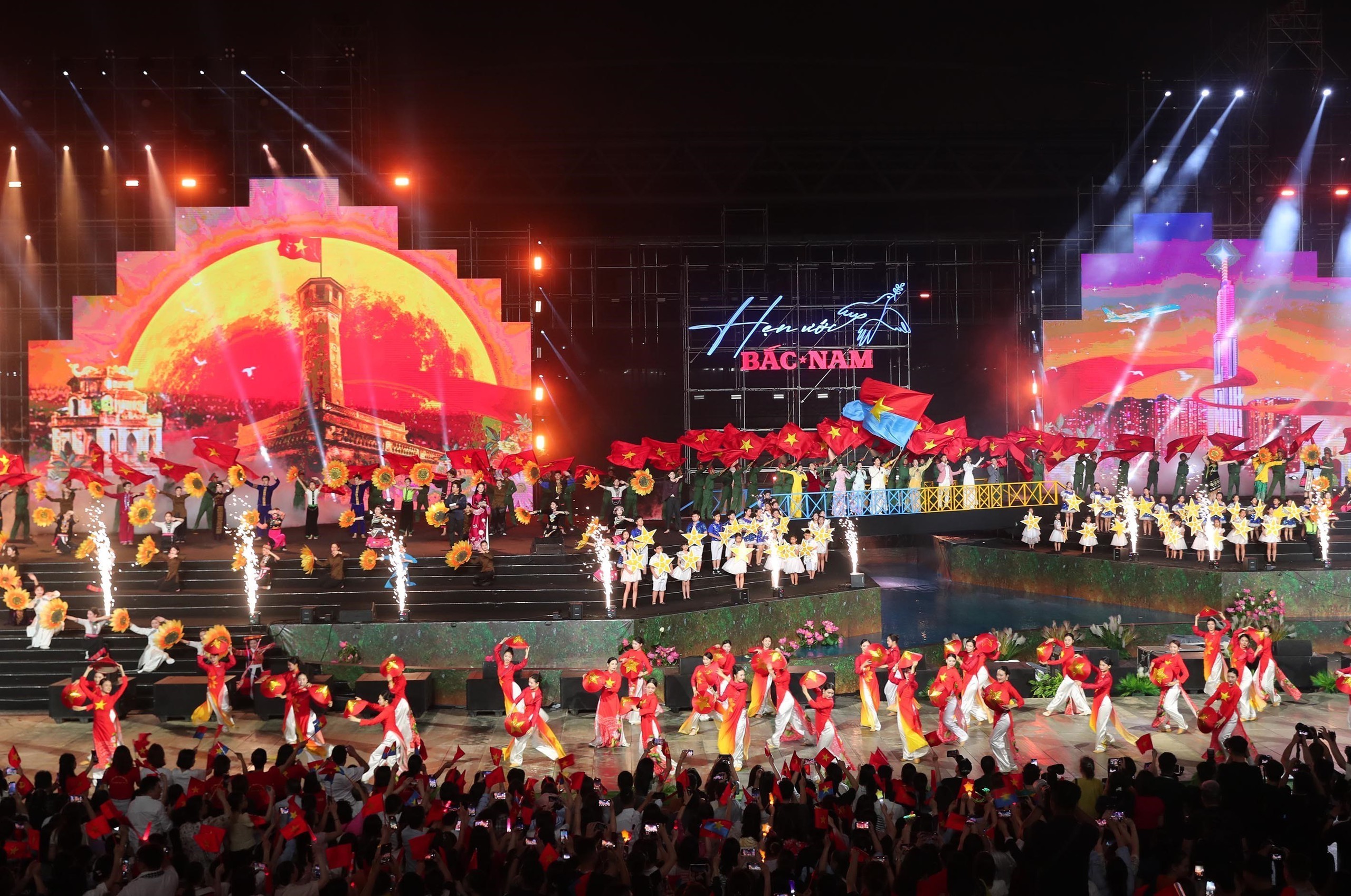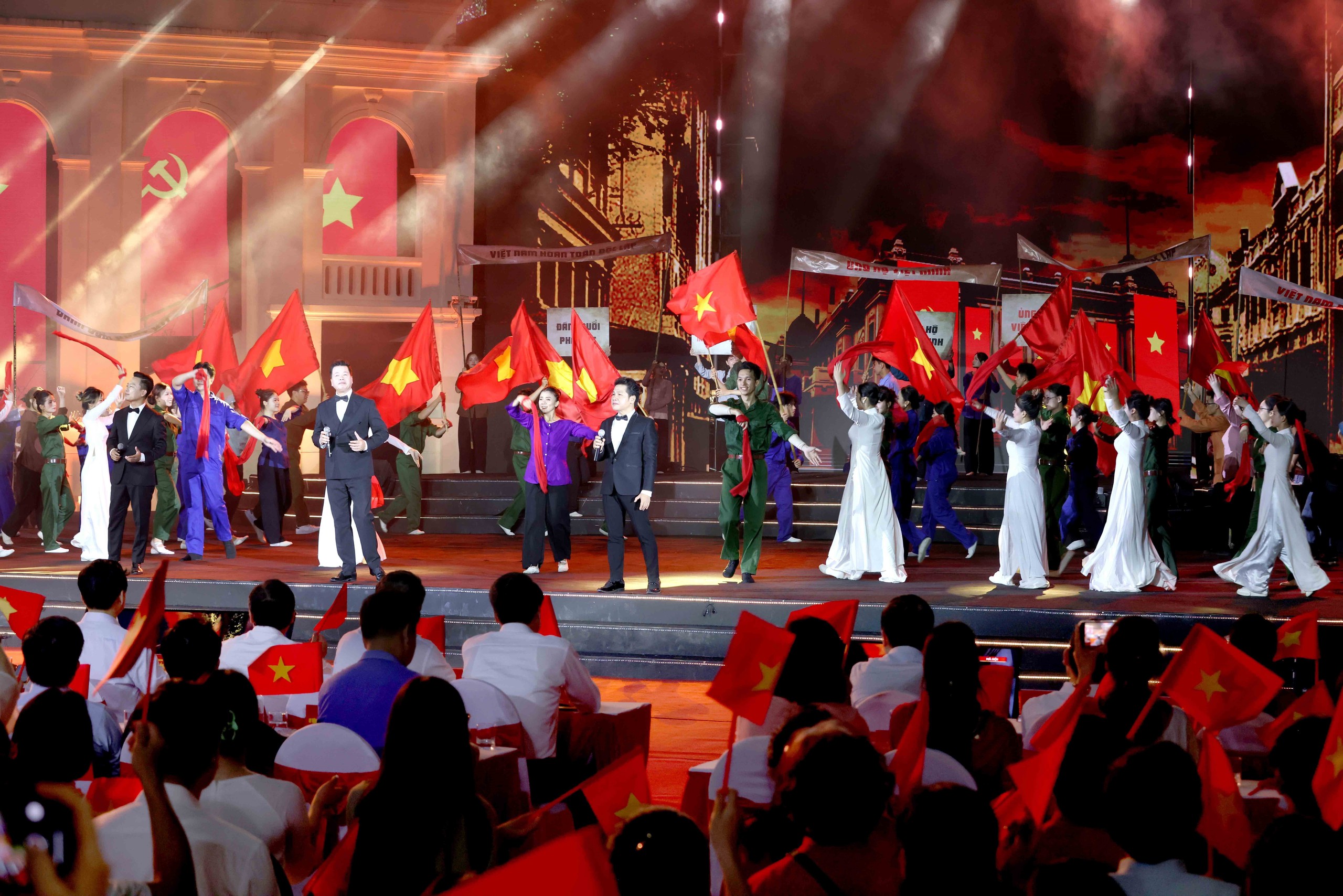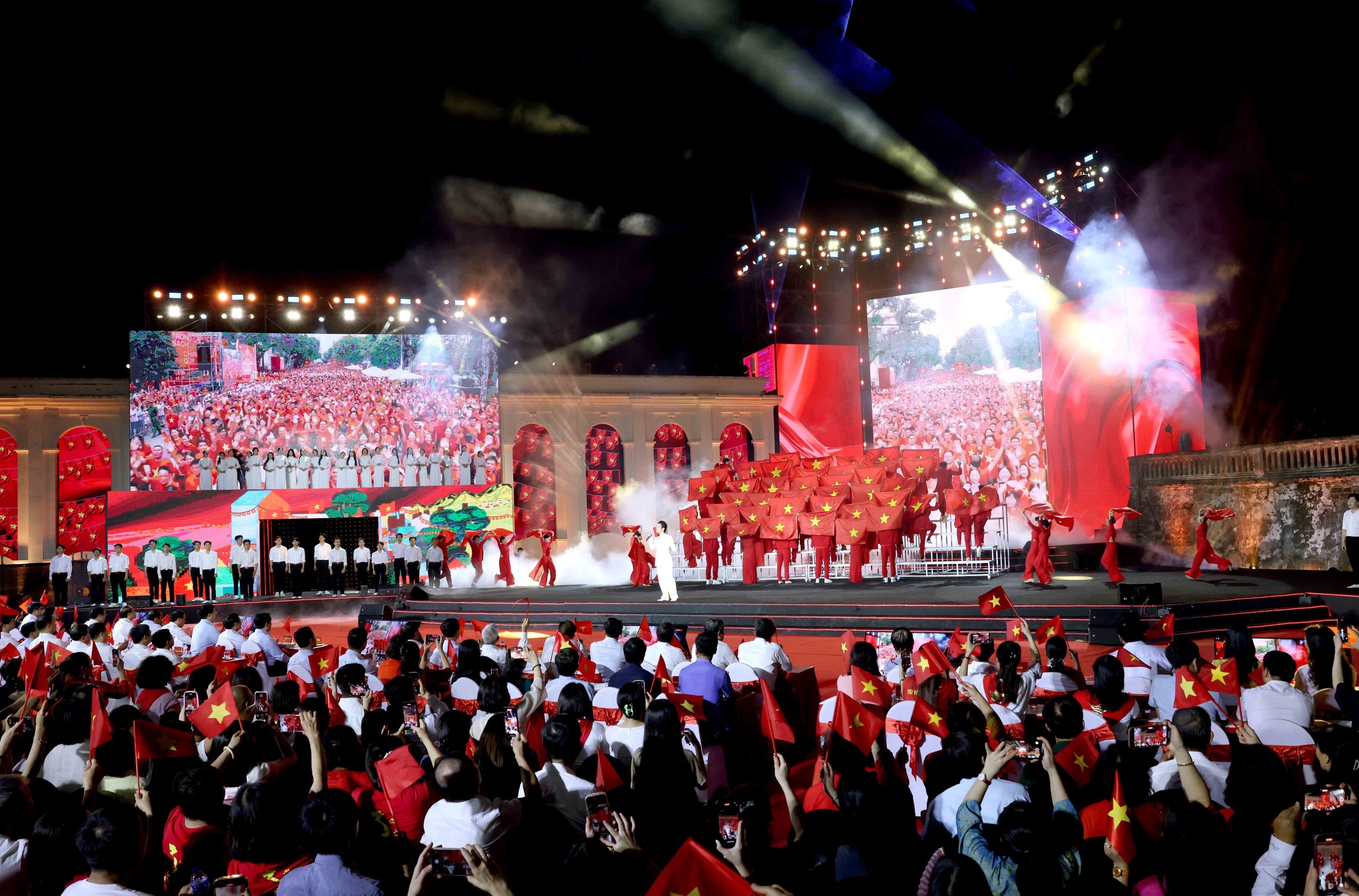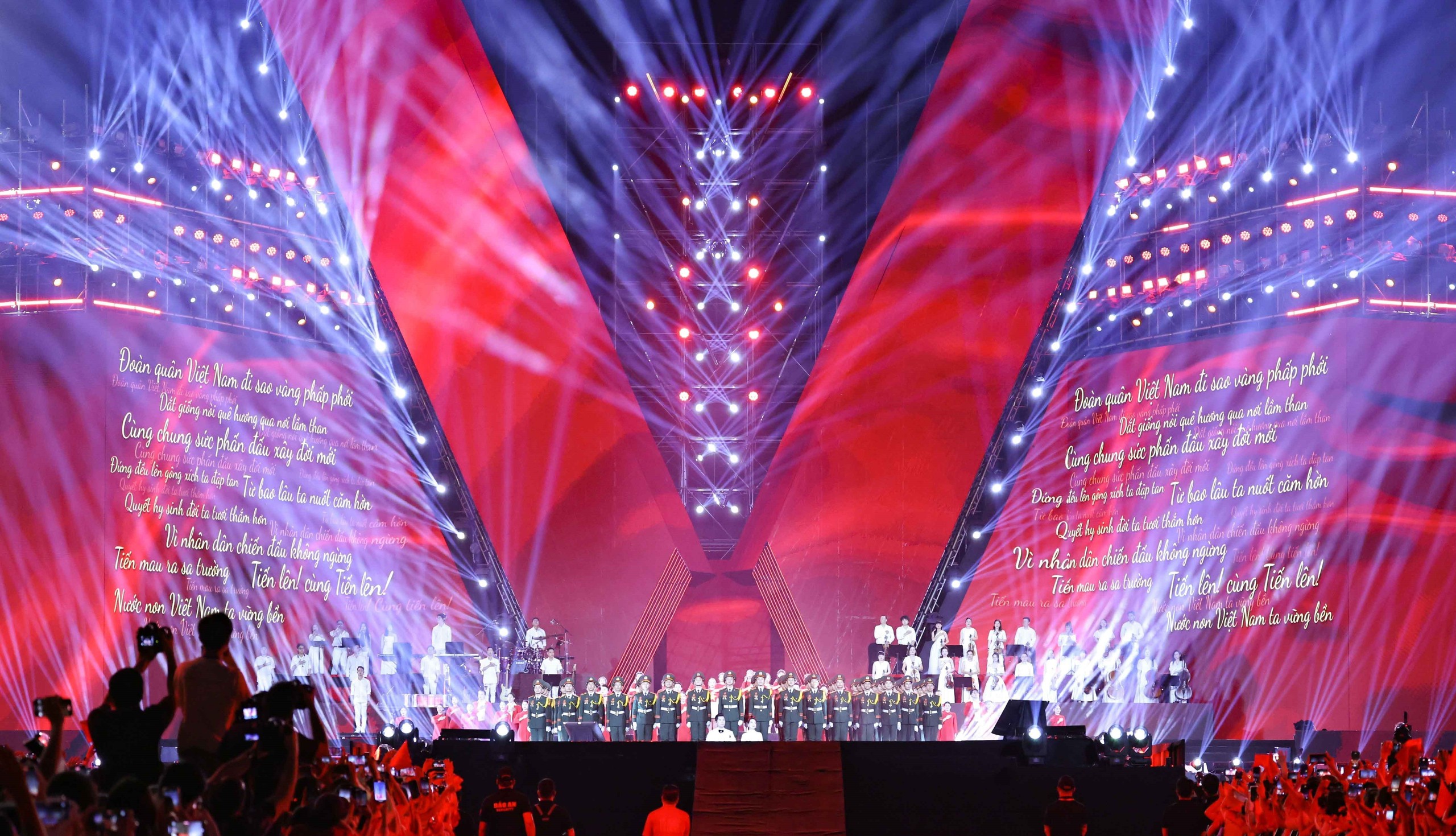 Ở góc độ tổ chức, các concert quốc gia cho thấy sự chuyên nghiệp rõ rệt: kịch bản được xây dựng theo cấu trúc rõ ràng, chia chương, hồi; dàn nghệ sĩ là sự kết hợp giữa các giọng ca gạo cội với lực lượng ca sĩ trẻ, nhóm nhạc đang được yêu thích; khâu kỹ thuật âm thanh, ánh sáng, màn hình LED, mapping, thậm chí drone show được đầu tư ở mức tiệm cận với các đại nhạc hội thương mại.