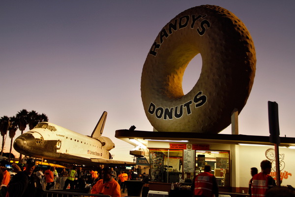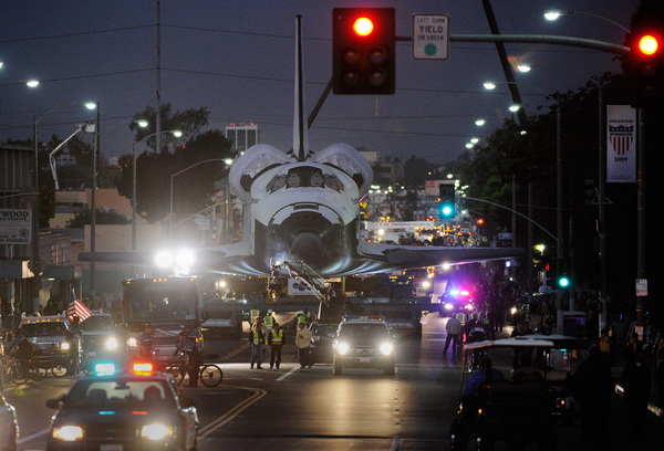 Dưới đây là một số hình ảnh trong chuyến hành trình trên đường phố Los Angeles của tàu con thoi Endeavour:
