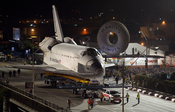 Theo bảo tàng Exposition Park Museum, chuyến đi này của tàu con thoi tiêu tốn khoảng 10 triệu USD, vượt qua quãng đường khoảng 20km. Tàu Endeavour được đặt trên một thiết bị chuyên dụng có tới 160 bánh xe và nó được di chuyển một cách chậm rải qua các con phố ở Los Angeles.