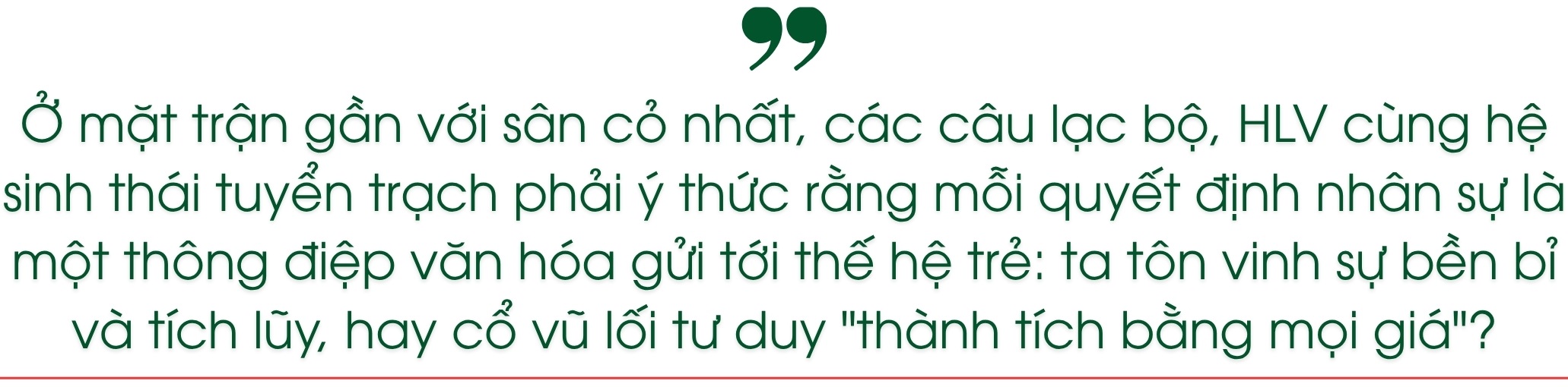 Ở cấp độ quốc gia, các liên đoàn cần làm gương về minh bạch: công bố tiêu chí, hồ sơ, thời gian cư trú, mức độ gắn bó xã hội của cầu thủ, đồng thời nuôi dưỡng năng lực nội sinh - đầu tư cho hệ thống đào tạo trẻ - thay vì phụ thuộc vào "đường tắt". Và ở mặt trận gần với sân cỏ nhất, các câu lạc bộ, HLV cùng hệ sinh thái tuyển trạch phải ý thức rằng mỗi quyết định nhân sự là một thông điệp văn hóa gửi tới thế hệ trẻ: ta tôn vinh sự bền bỉ và tích lũy, hay cổ vũ lối tư duy "thành tích bằng mọi giá"?