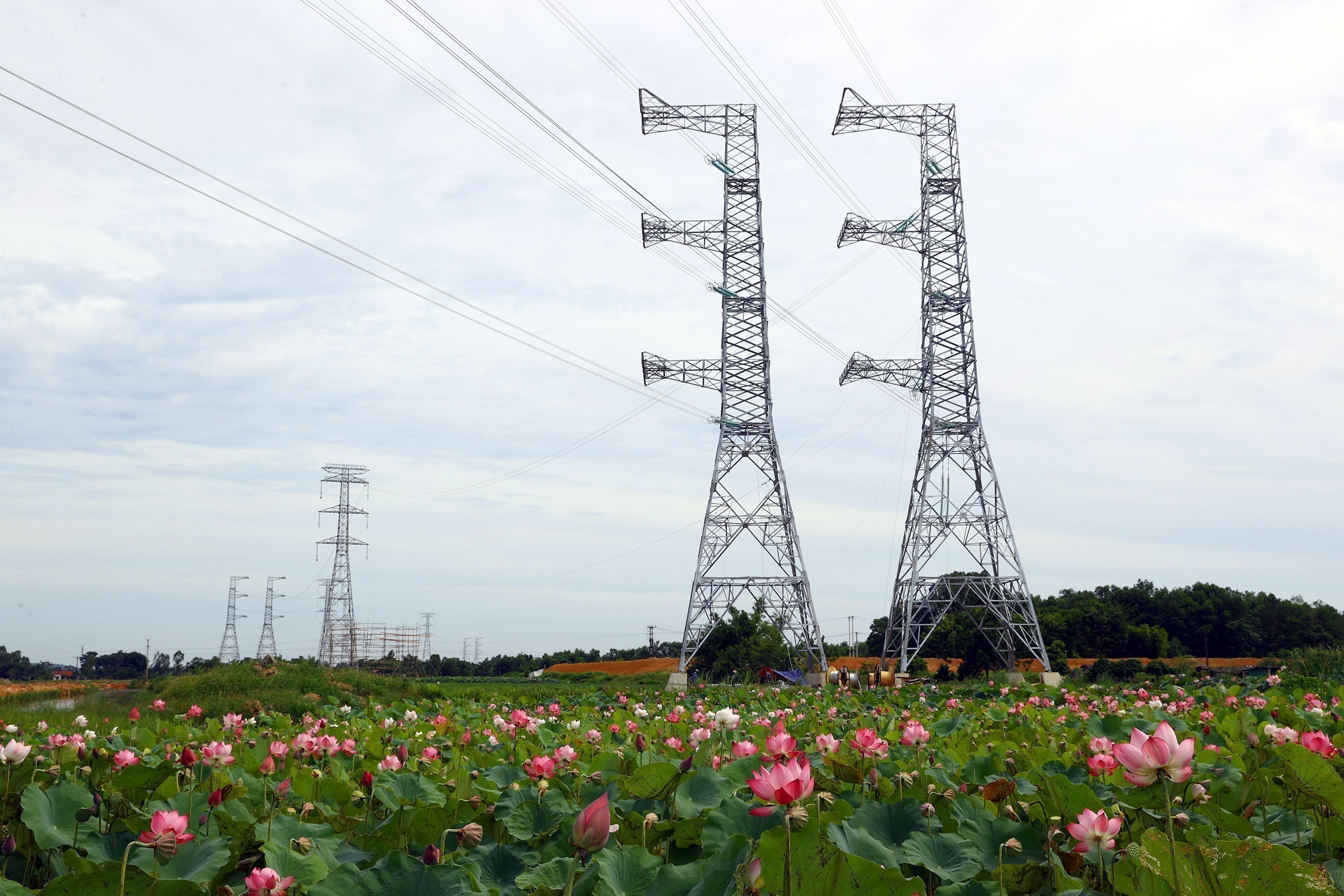 Tuyến đường dây 500kV đoạn Nhà máy nhiệt điện Nam Định 1 – Thanh Hóa qua địa phận huyện Hậu Lộc (Thanh Hóa) hoàn thành ngày 30/6/2024. Ảnh: Huy Hùng/TTXVN