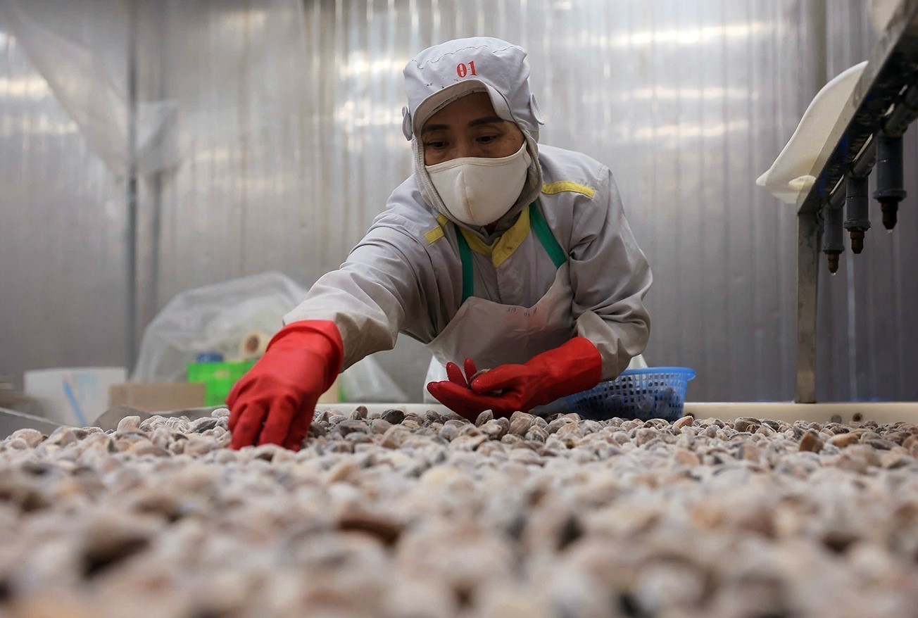 Chế biến ngao xuất khẩu tại nhà máy của Công ty CP Xuất nhập khẩu thuỷ sản Thanh Hóa, tỉnh Thanh Hóa. Ảnh: Lê Đông - TTXVN