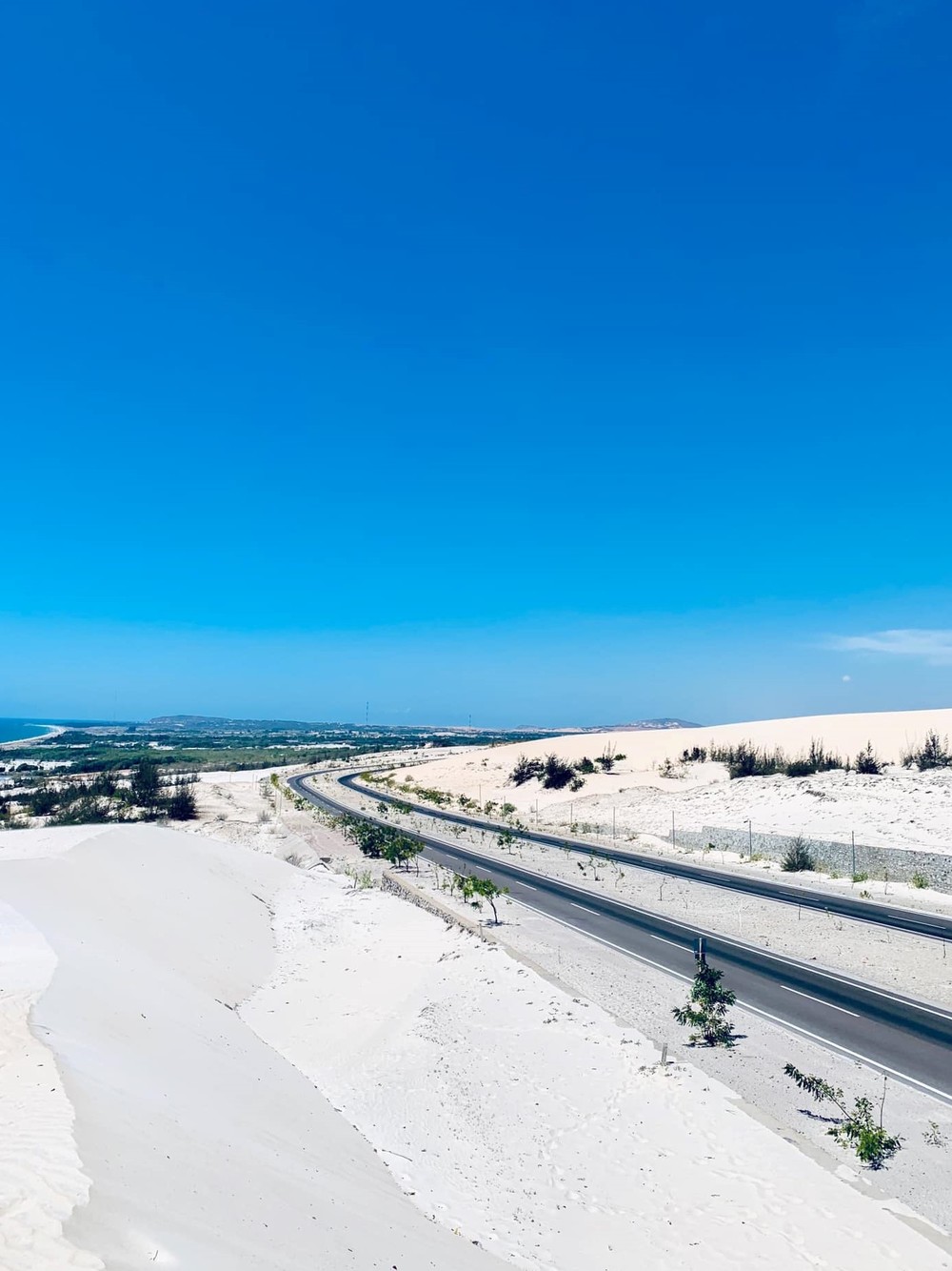 Hai bên đường đều là những đồi cát trắng tinh. (Ảnh: Nguyễn Trọng Hưng/Check in Vietnam)