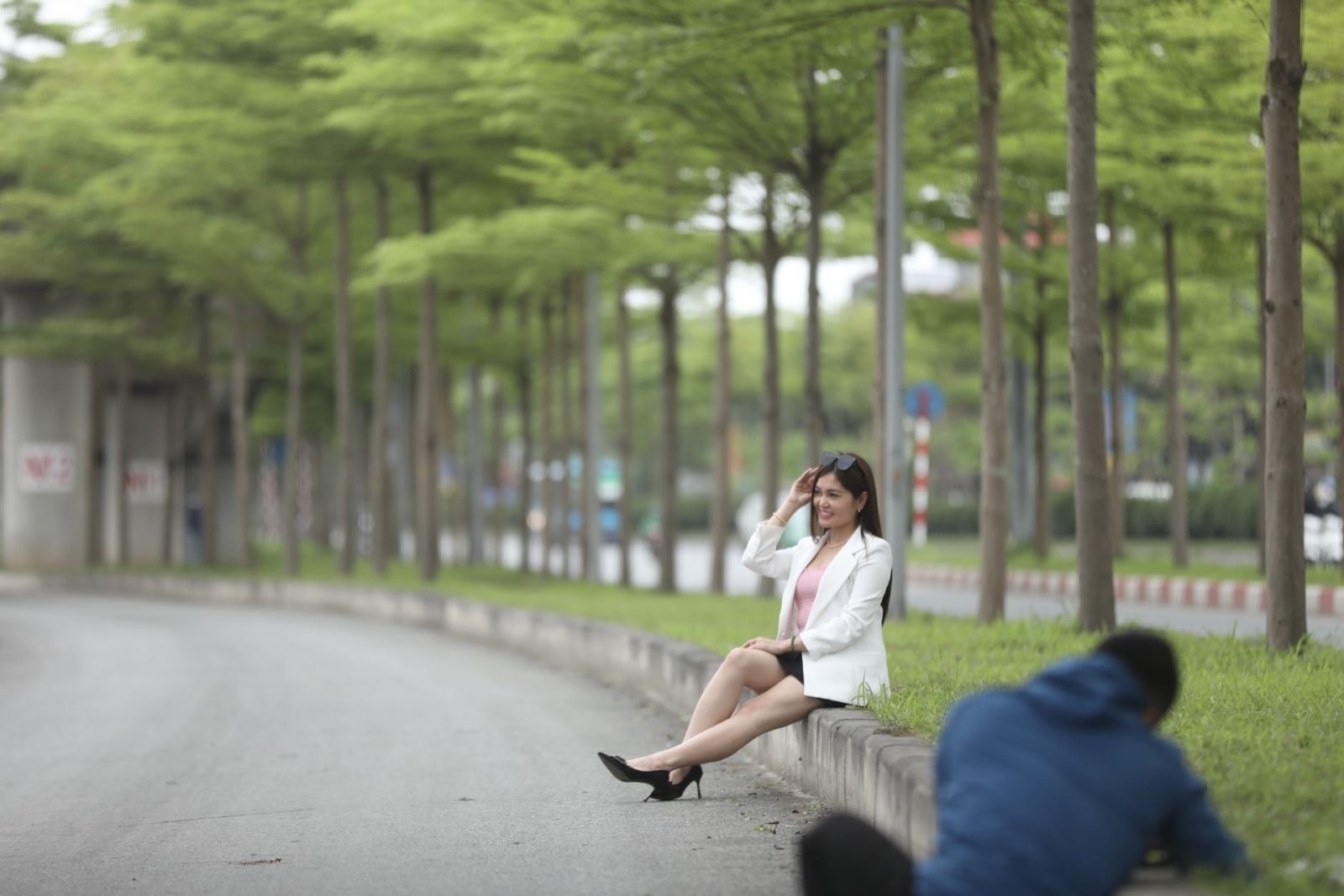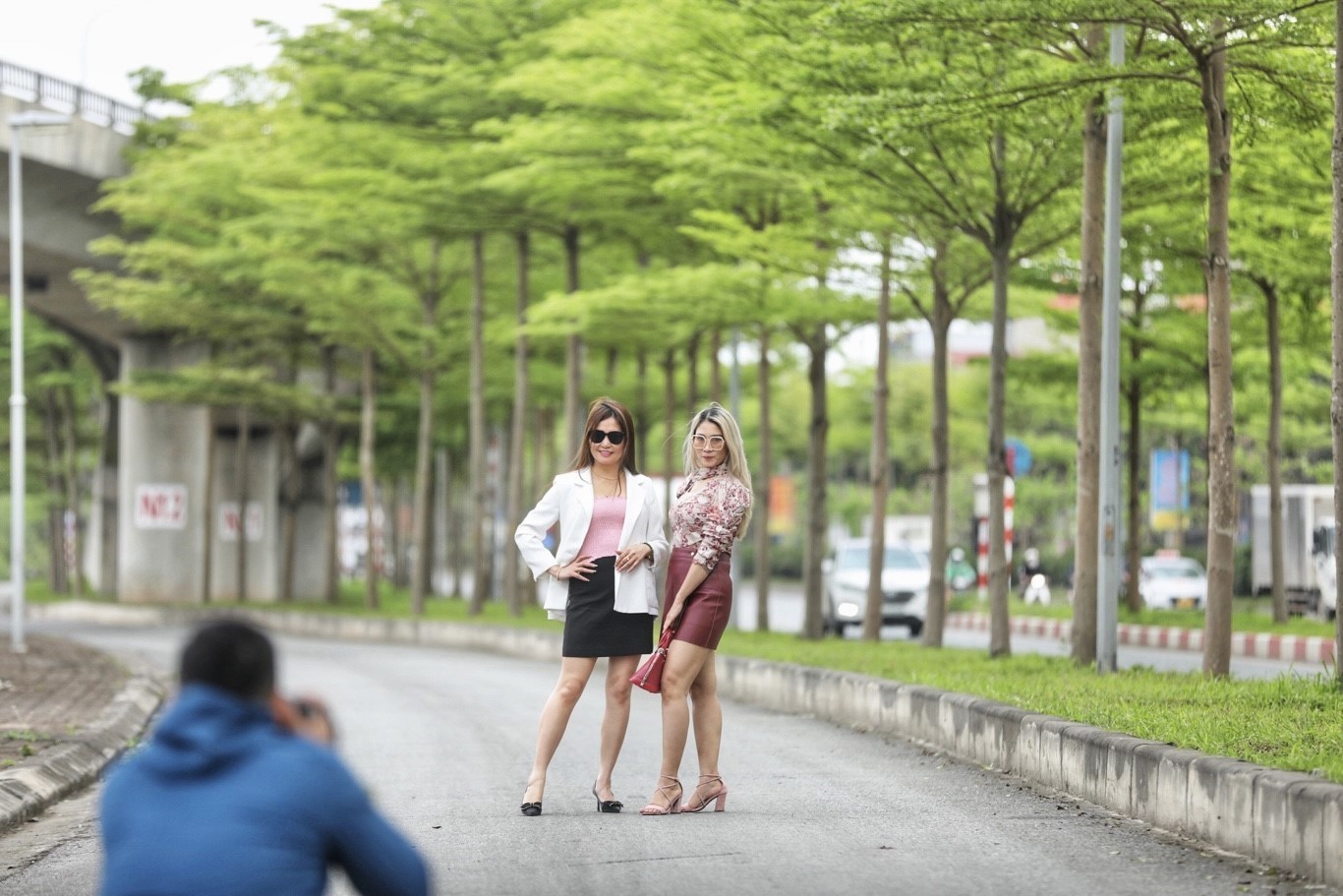 Cung đường đẹp thơ mộng khi hai bên trồng những cây bàng lá nhỏ xanh mướt, thẳng tắp