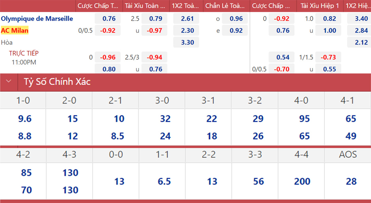 Xem trực tiếp Marseille vs Milan