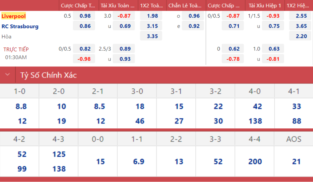 * Dự đoán của TT&VH: Liverpool 3-1 Strasbourg