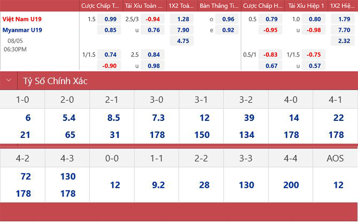 U19 Việt Nam được các nhà cái đánh giá cao hơn rất nhiều so với đối thủ nhờ có lợi thế sân nhà và chất lượng nhân sự cao hơn. Kết quả gần đây cũng cho thấy, U19 Việt Nam thường xuyên giành chiến thắng trước đội bóng này và người chơi có thể đặt niềm tin vào đội chủ nhà dù kèo chấp là khá sâu.