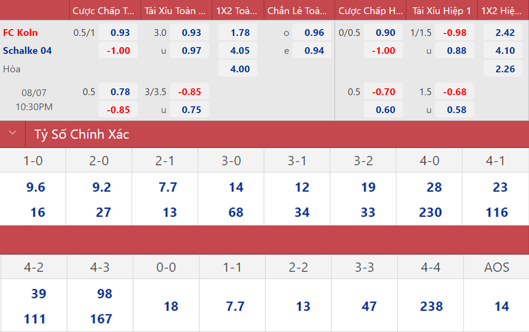 Soi kèo nhà cái Cologne vs Schalke. Nhận định bóng đá Bundesliga (22h30, 7/8). Dự đoán bóng đá Cologne vs Schalke. Tỷ lệ kèo bóng đá Đức.