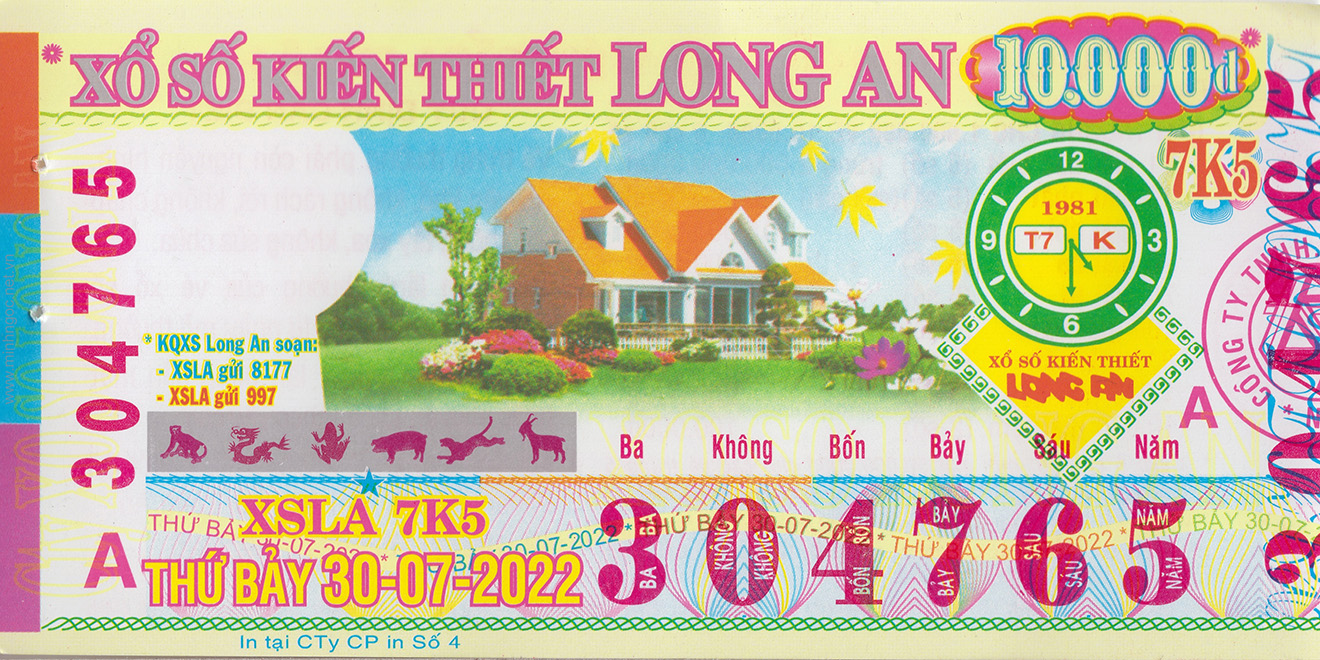 Mẫu vé số Long An (XSLA) ngày 30-7-2022