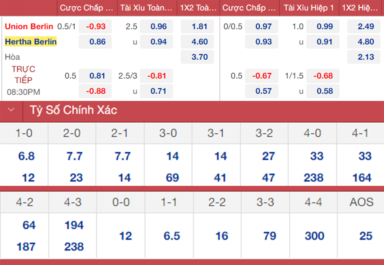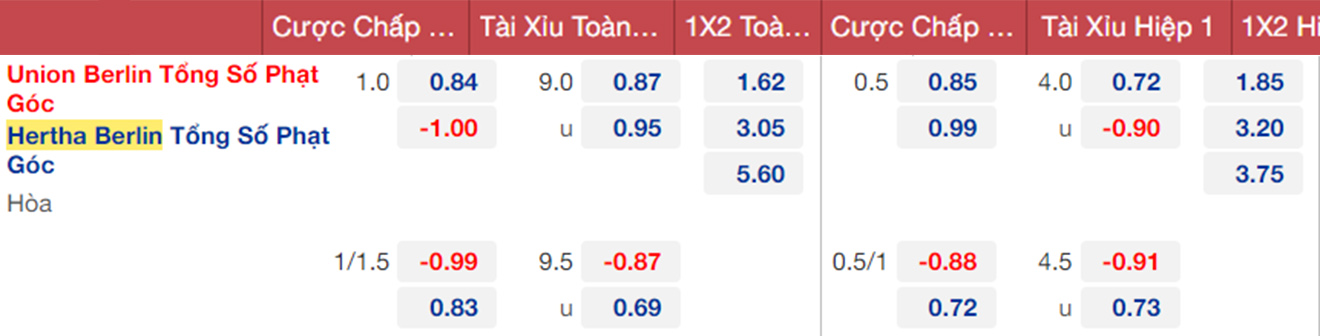 Ở 2 lần gần nhất gặp nhau, Union Berlin đều thắng và tổng số bàn thắng đều vượt mốc 2,5 bàn. Do vậy trận đấu tới sẽ có nhiều bàn thắng.