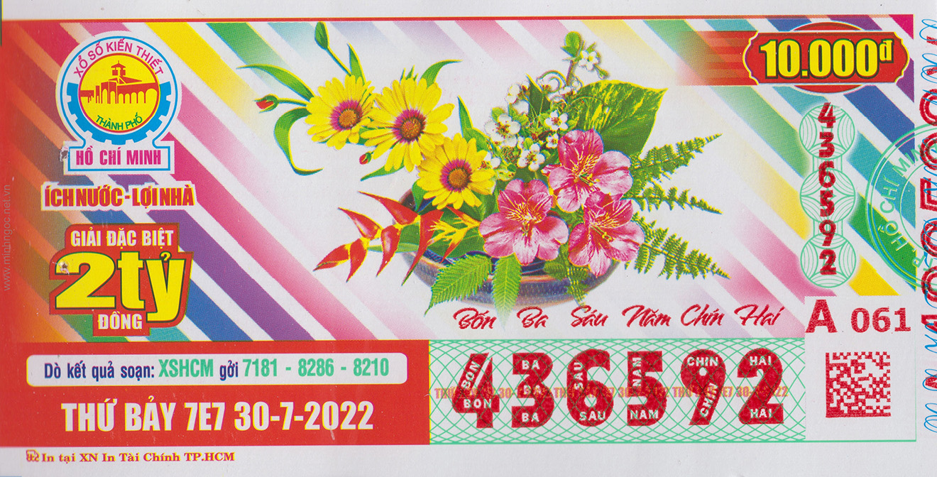 Mẫu vé số Thành phố HCM (XSHCM) ngày 30/7/2022