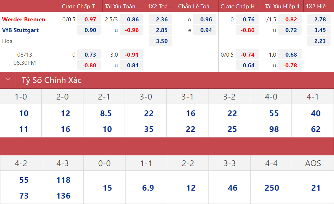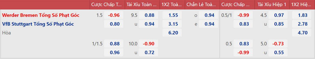 Tới làm khách trên sân của Bremen trong những mùa giải gần đây không phải nhiệm vụ quá khó khăn với Stuttgart. Lần gần nhất Bremen đánh bại Stuttgart trên sân nhà cách đây gần 5 năm. Lựa chọn Stuttgart là điều hợp lý ở cặp đấu này.