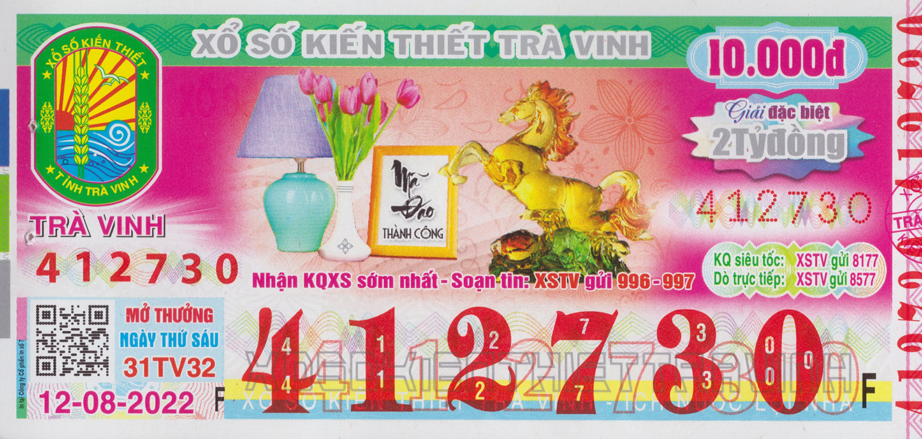 Mẫu vé số Trà Vinh (XSTV) ngày 12/8/2022