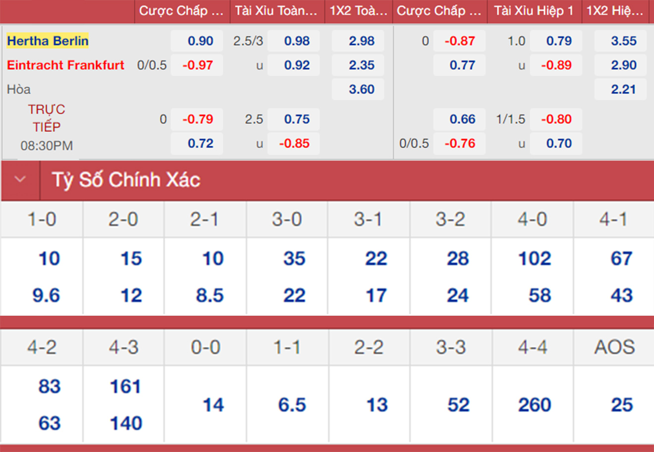 Eintracht Frankfurt nhiều khả năng thắng Hertha Berlin. Hertha Berlin toàn thua trong 5 trận gần nhất. Họ đã nhận thất bại 1-3 trước Union Berlin ở trận ra quân.