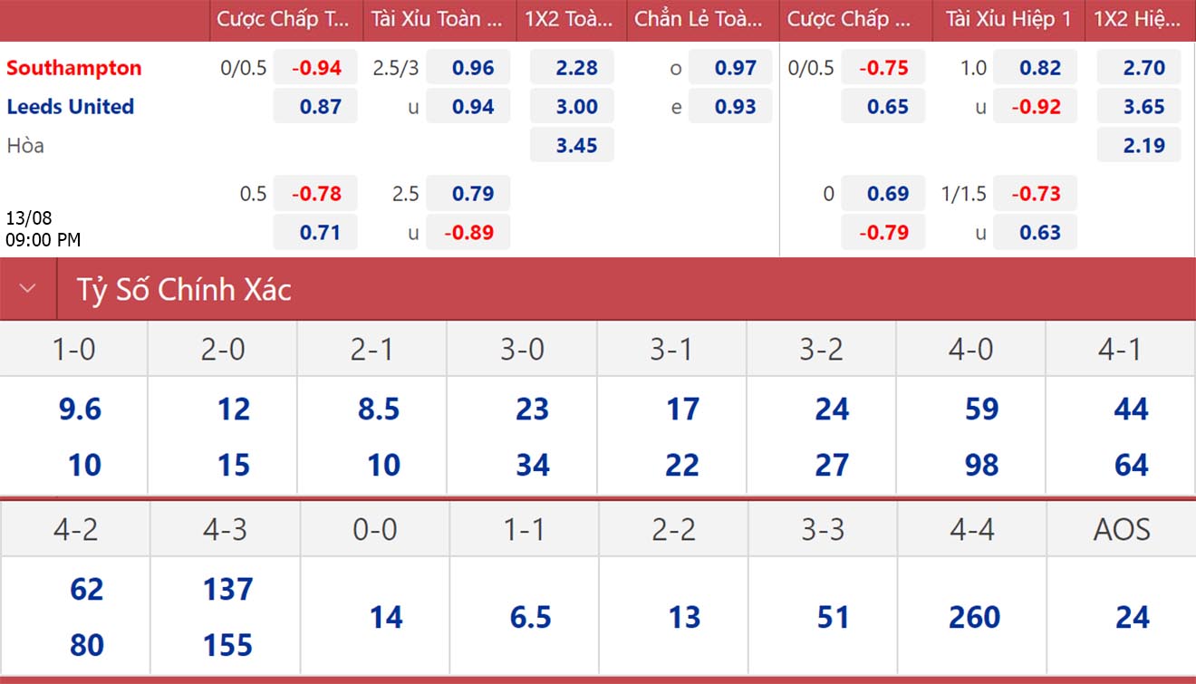 Soi kèo nhà cái Southampton vs Leeds. Nhận định, dự đoán bóng đá Ngoại hạng Anh (21h00, 13/8). Dự đoán bóng đá Southampton vs Leeds. Tỷ lệ kèo Ngoại hạng Anh.