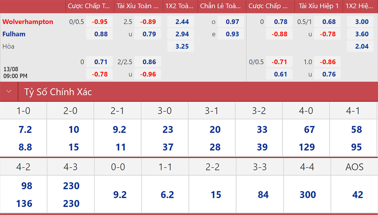 * 21h00, 13/8: Wolves vs Fulham