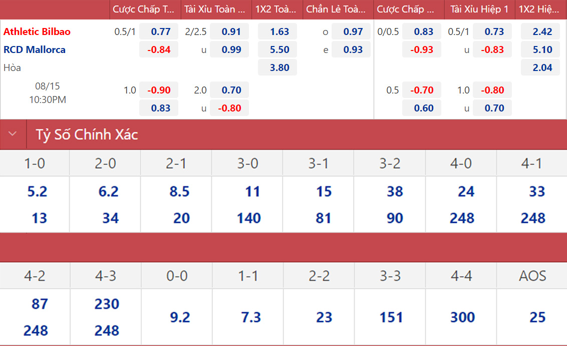 Soi kèo nhà cái Bilbao vs Mallorca. Nhận định bóng đá La Liga (22h30, 15/8). Dự đoán bóng đá Bilbao vs Mallorca. Tỷ lệ kèo bóng đá Tây Ban Nha.