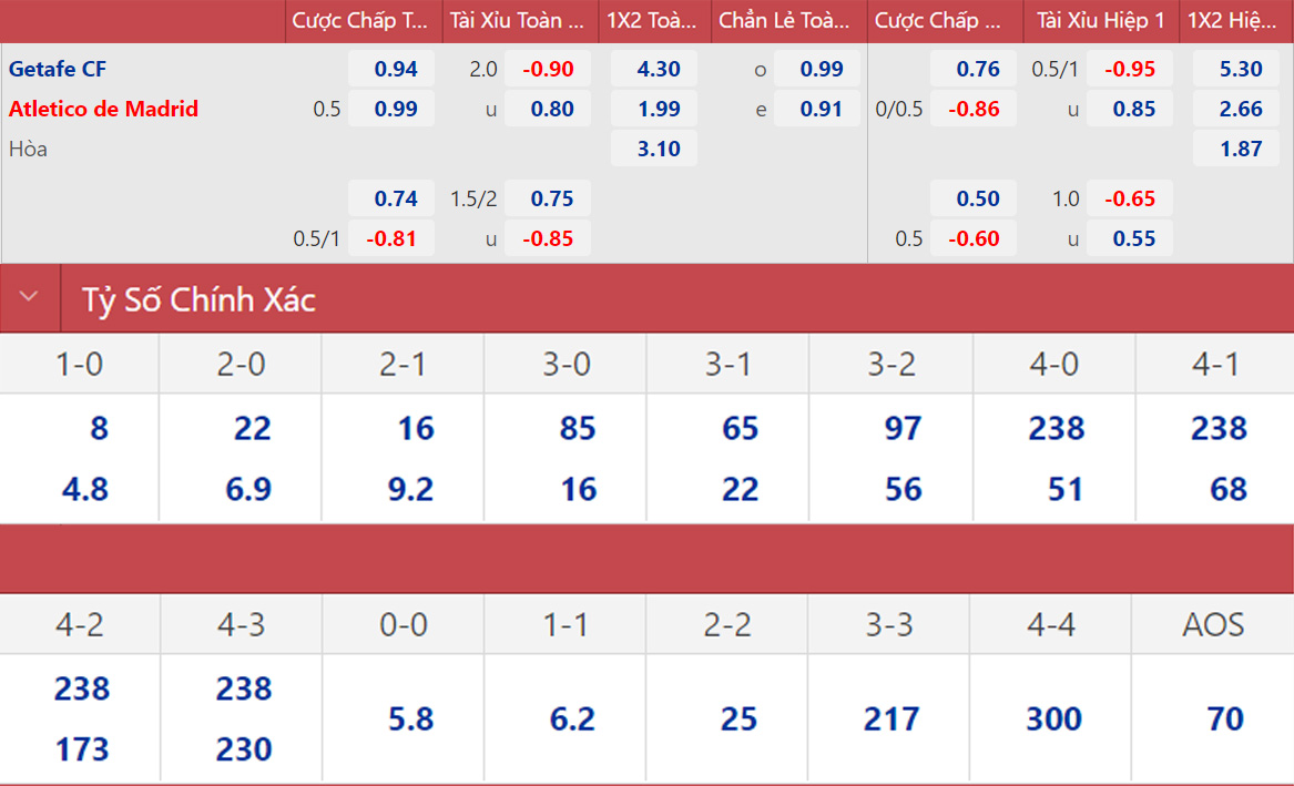 Dự đoán: Getafe 0-2 Atletico Madrid
