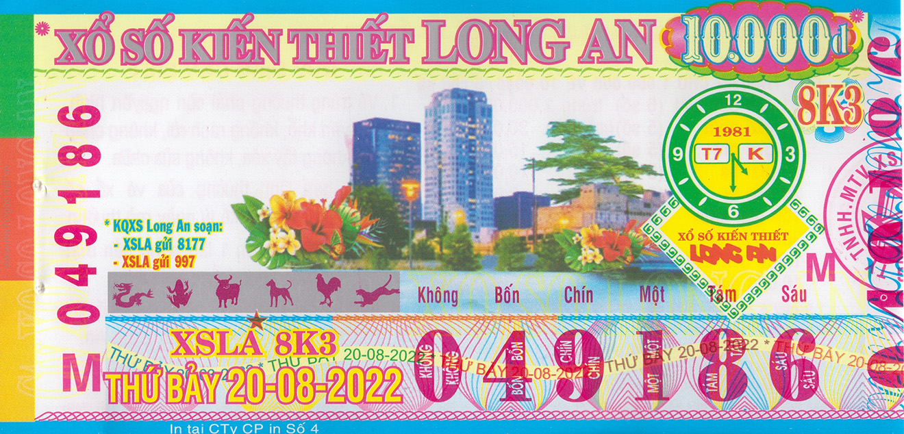Mẫu vé số Long An (XSLA) ngày 20/8/2022
