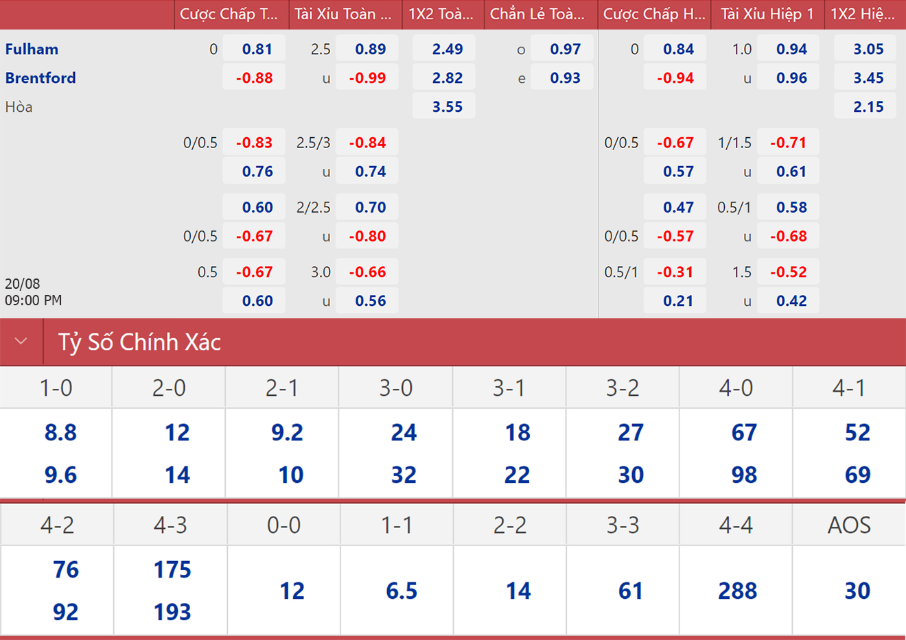 Brentford đang có khởi đầu cực ấn tượng khi giành 4 điểm sau hai vòng đấu và xếp thứ ba trên bảng xếp hạng. Đặc biệt, vòng trước, họ vừa đè bẹp đội bóng giàu truyền thống bậc nhất xứ sương mù MU đến 4-0. Fulham cũng gây sốc khi cầm hòa ông lớn Liverpool 2-2, nhưng sau đó chỉ giành được 1 điểm trên sân Molineaux của Wolves (0-0). Với 2 điểm, Fulham đang xếp thứ 13 trên bảng xếp hạng.