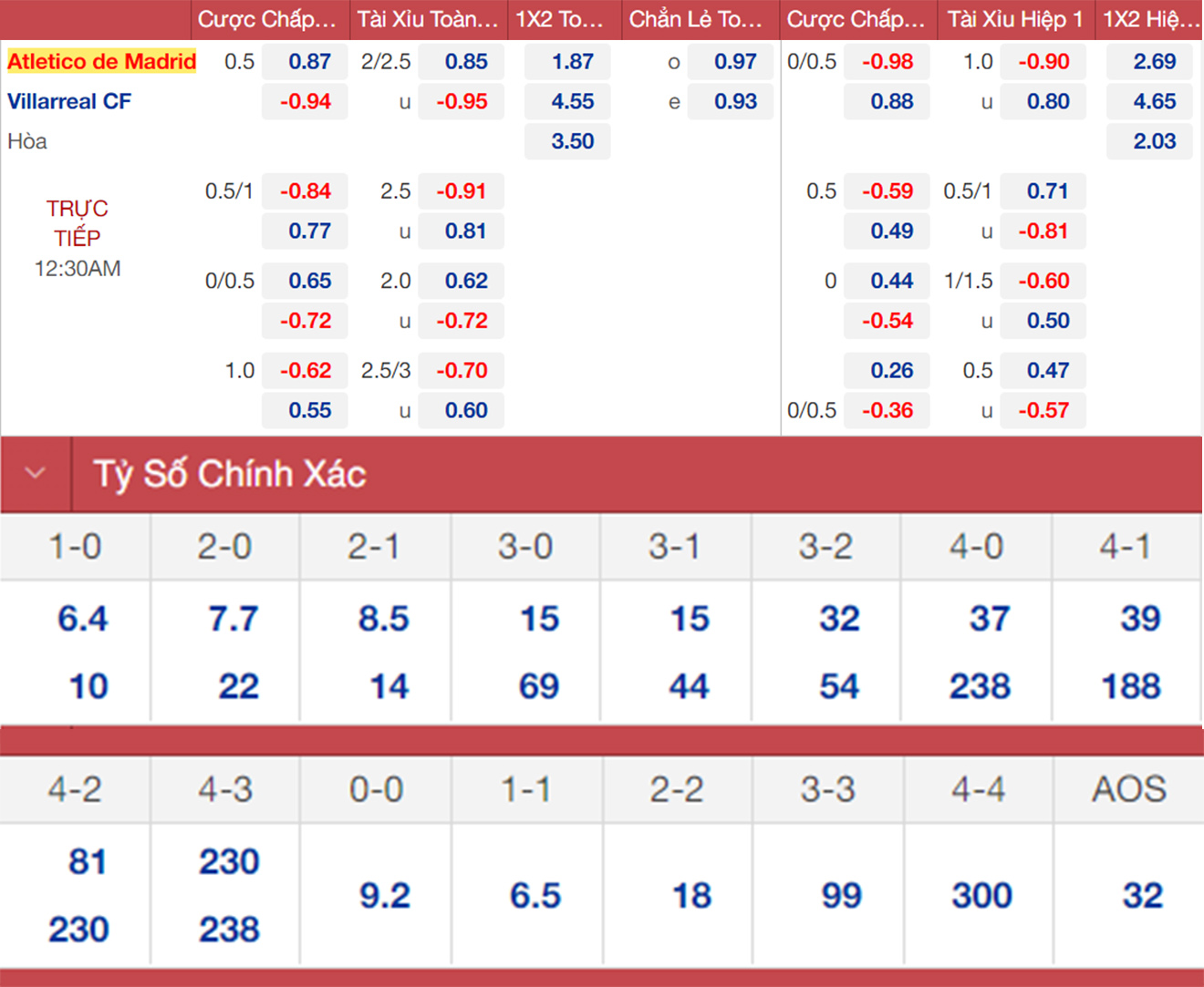 Soi kèo, nhận định Atletico vs Villarreal