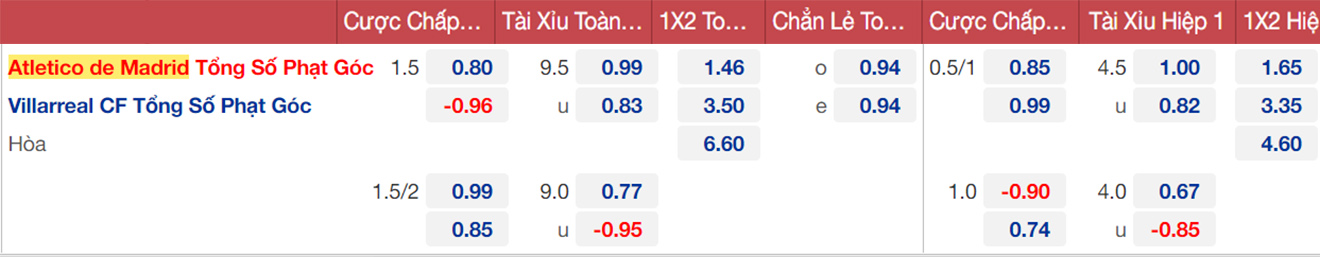 Atletico Madrid nhiều khả năng hòa Villarreal. Đây là trận đấu cân sức và thu hút nhiều sự chú ý ở La Liga. Ở 2 lần gần nhất gặp nhau, Atletico Madrid đều hòa trước “Tàu ngầm vàng”.