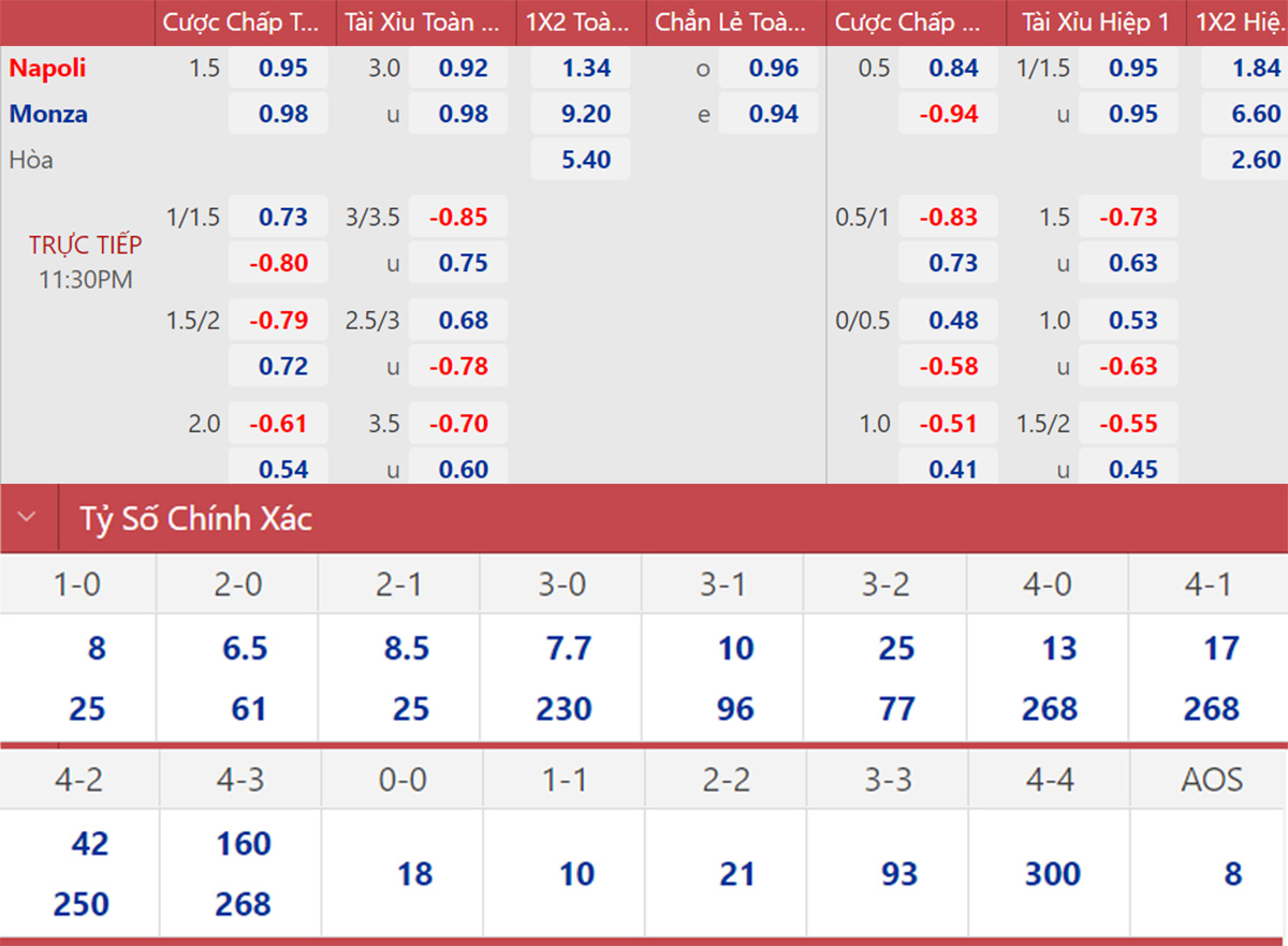 Sau khi kéo dài chuỗi bất bại trong các trận mở màn Serie A lên con số 7, đội dẫn đầu Napoli muốn có thêm một chiến thắng nữa khi tiếp đón Monza mới thăng hạng tại Stadio Diego Armando Maradona vào Chủ nhật.