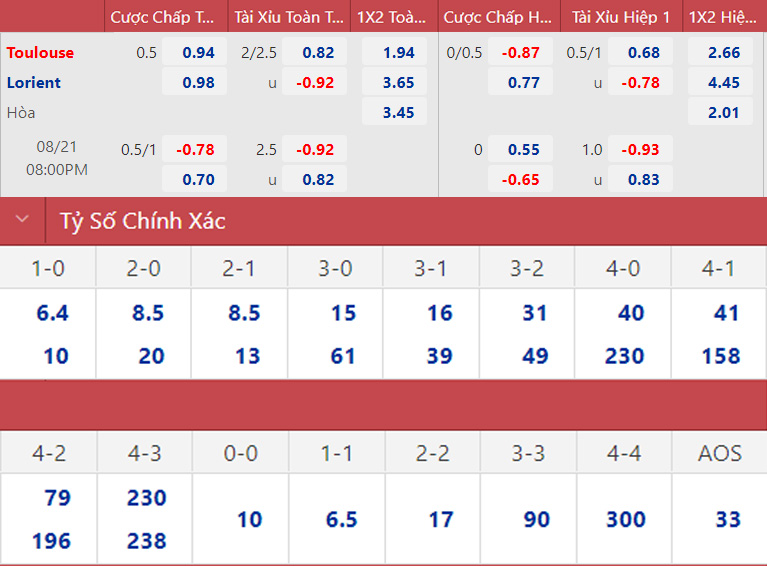 Toulouse mặc dù là đội bóng mới lên hạng nhưng được nhà cái cho tỷ lệ chấp hòa. Điều này cho thấy họ không phải đội bóng dễ bắt nạt ở mùa giải này. Ngay ở vòng 1, đội bóng khó chịu Nice vất vả lắm mới có 1 trận hòa với Toulouse.