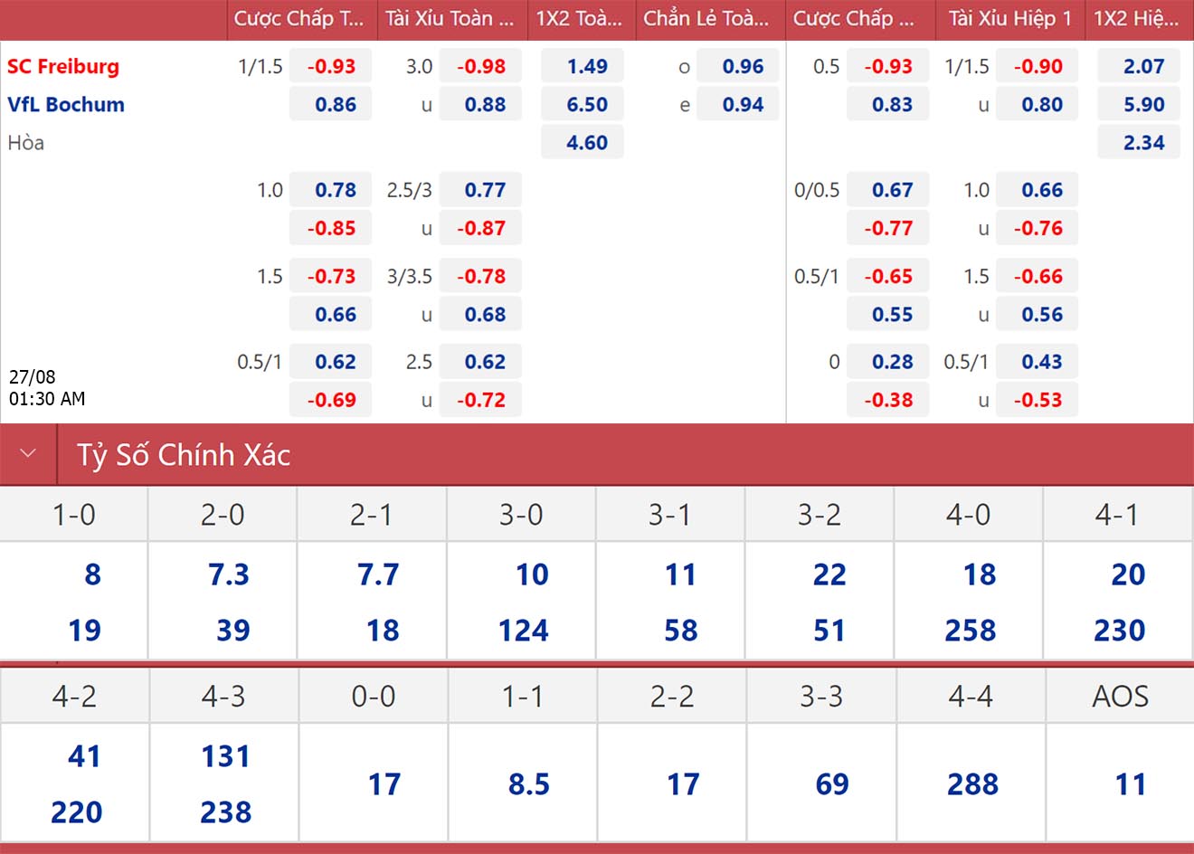 Soi kèo nhà cái Freiburg vs Bochum. Nhận định bóng đá Bundesliga (01h30, 27/8). Dự đoán bóng đá Freiburg vs Bochum. Tỷ lệ kèo bóng đá Đức.