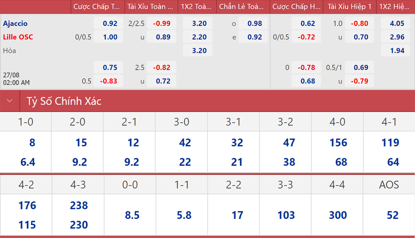 Xét cả về phong độ, đối đầu, cũng như thực lực, rõ ràng Lille vẫn được đánh giá cao hơn hẳn và sẽ không ngạc nhiên nếu họ giành 3 điểm ngay trên sân Ajaccio.
