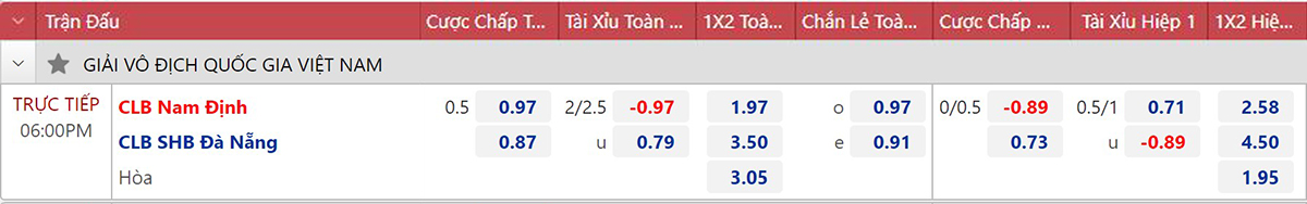 Trực tiếp Nam Định vs Đà Nẵng