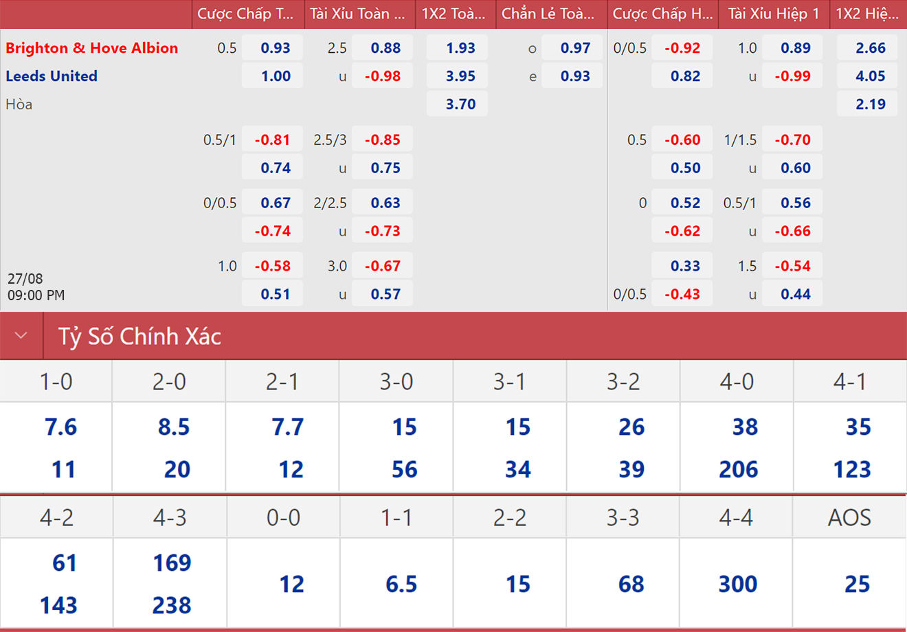Soi kèo nhà cái Brighton vs Leeds. Nhận định, dự đoán bóng đá Ngoại hạng Anh (21h00, 27/8). Dự đoán bóng đá Brighton vs Leeds. Tỷ lệ kèo bóng đá Anh.