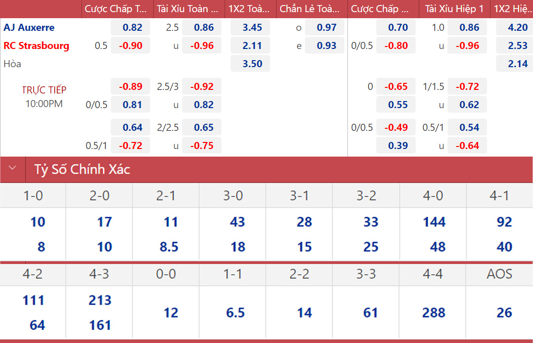 Soi kèo nhà cái Auxerre vs Strasbourg. Nhận định, dự đoán bóng đá Ligue 1 (22h00, 27/8). Dự đoán bóng đá Auxerre vs Strasbourg. Tỷ lệ kèo bóng đá Ligue 1.