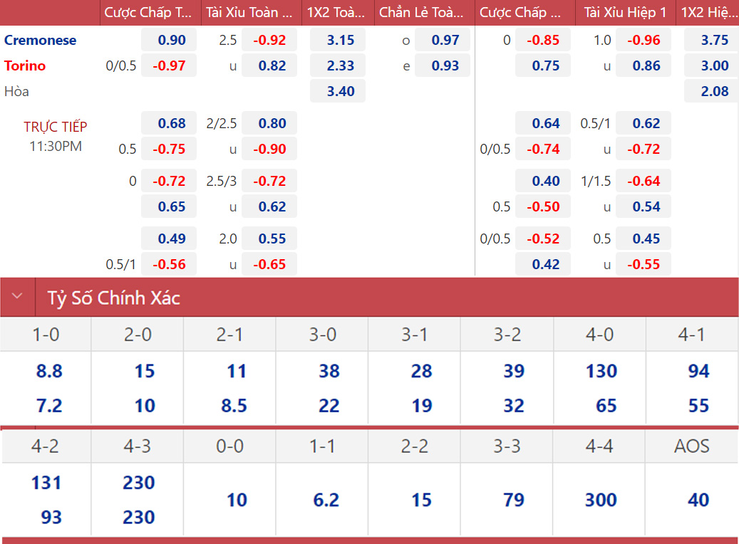 Soi kèo nhà cái Cremonese vs Torino. Nhận định bóng đá Serie A (23h30, 27/8). Dự đoán bóng đá Cremonese vs Torino. Tỷ lệ kèo Serie A.
